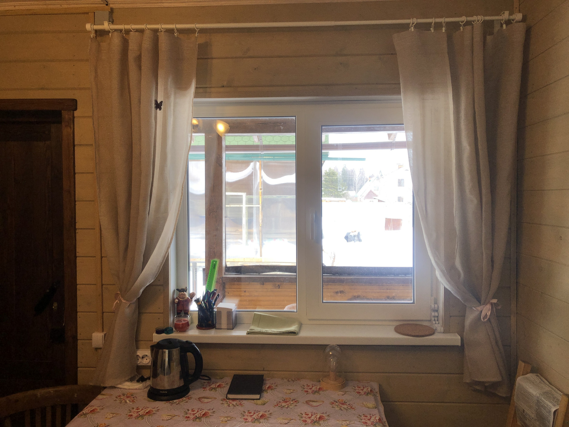 - возведён дачный тёплый дом 8*5 на сваях (одноэтажный, 3 комнаты, пластиковый стеклопакет, отделка имитацией бруса внутри и снаружи, веранда во всю длину дома, на веранде гибкие окна)