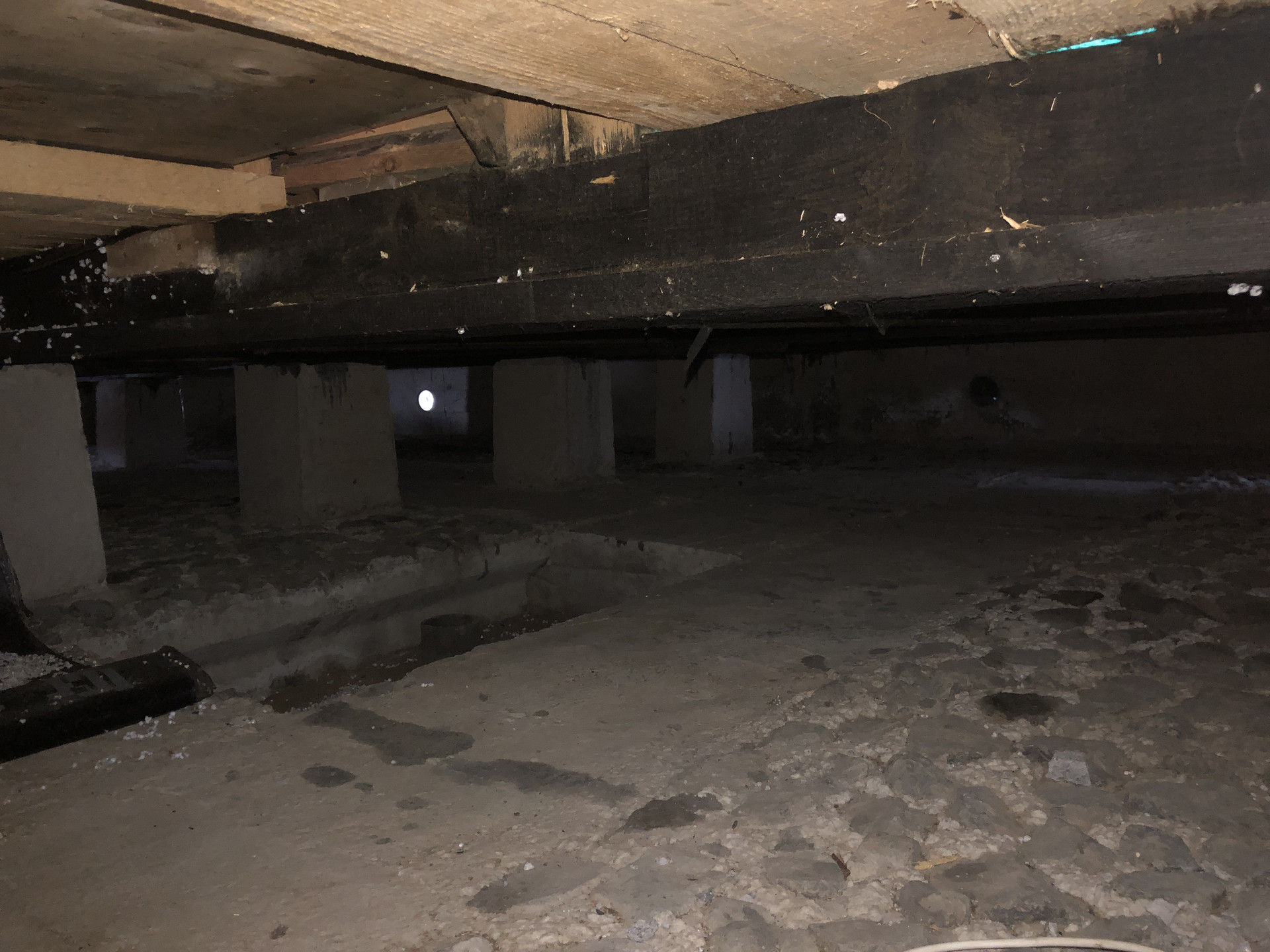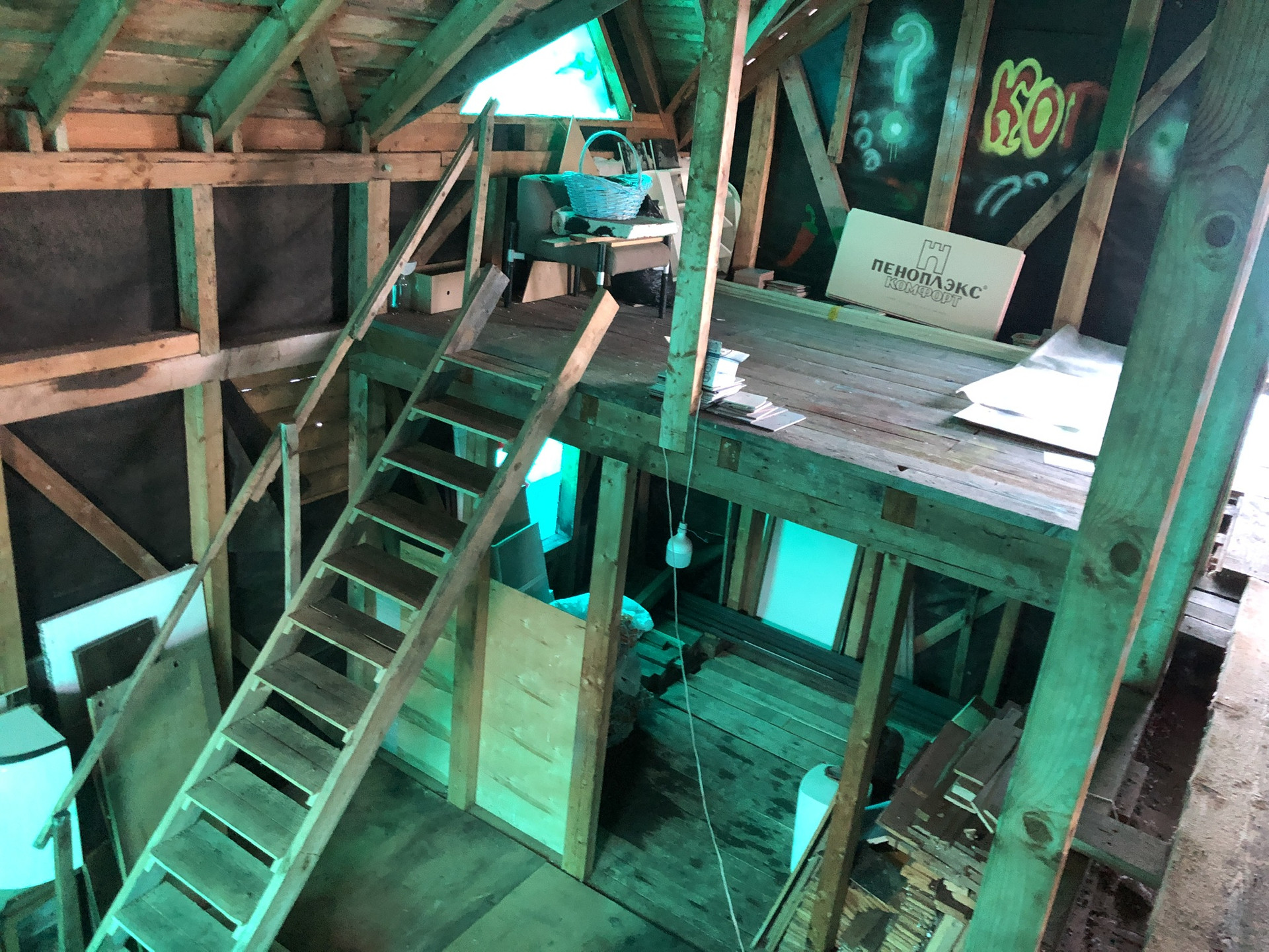 Внутри абсолютно сухой, лаги крепкие, чистые.