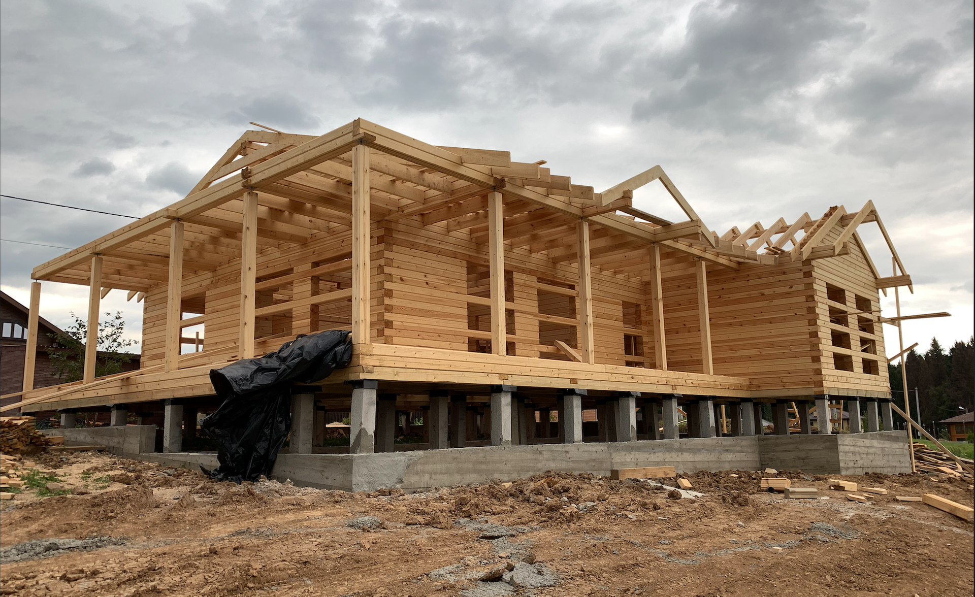 Поселок с охраной, два озера, водохранилище, залив. Септик, газ, электричество. Получено разрешение на строительство и реконструкцию, присвоен адрес. Строительство остановлено на этапе черновых полов и внутренних коммуникаций.