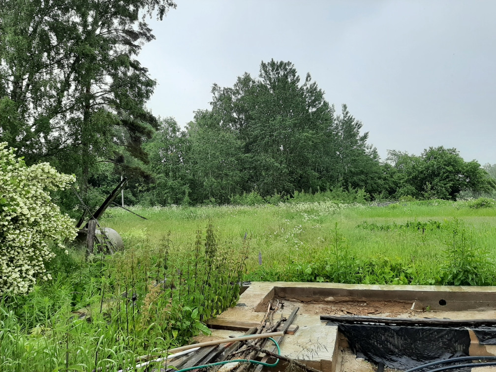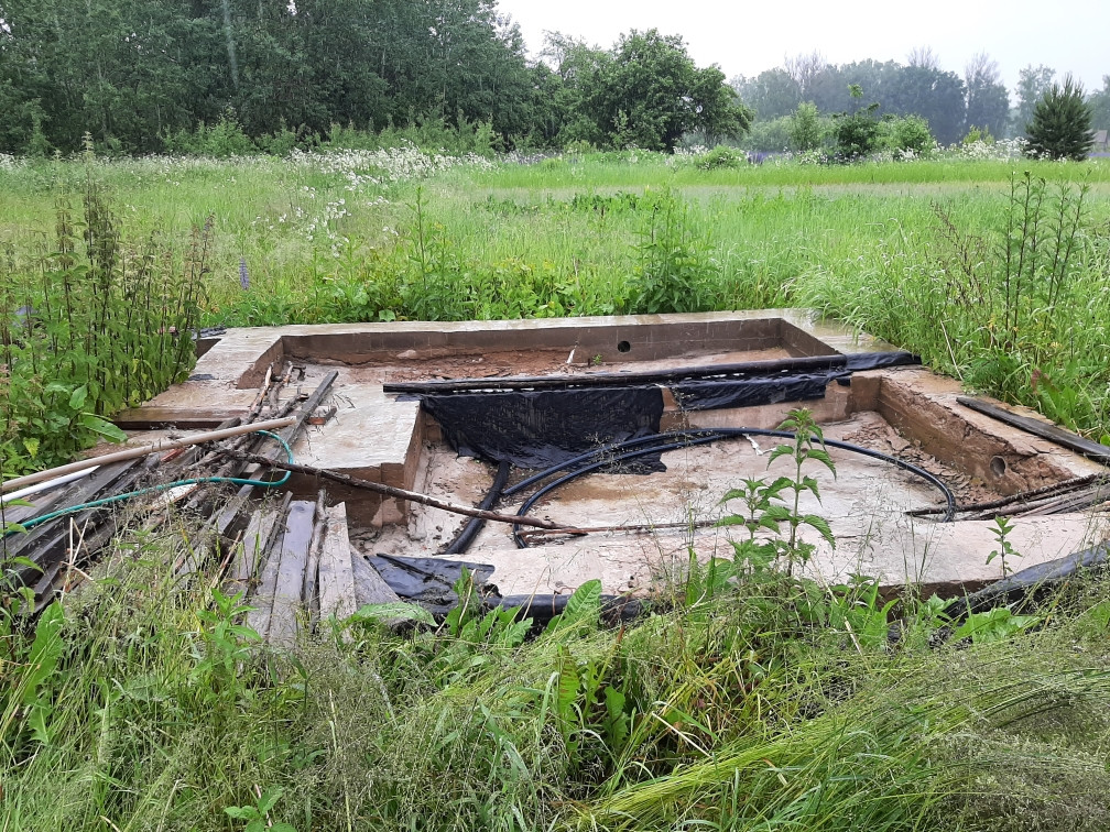 Есть сарай и новый фундамент под баню.