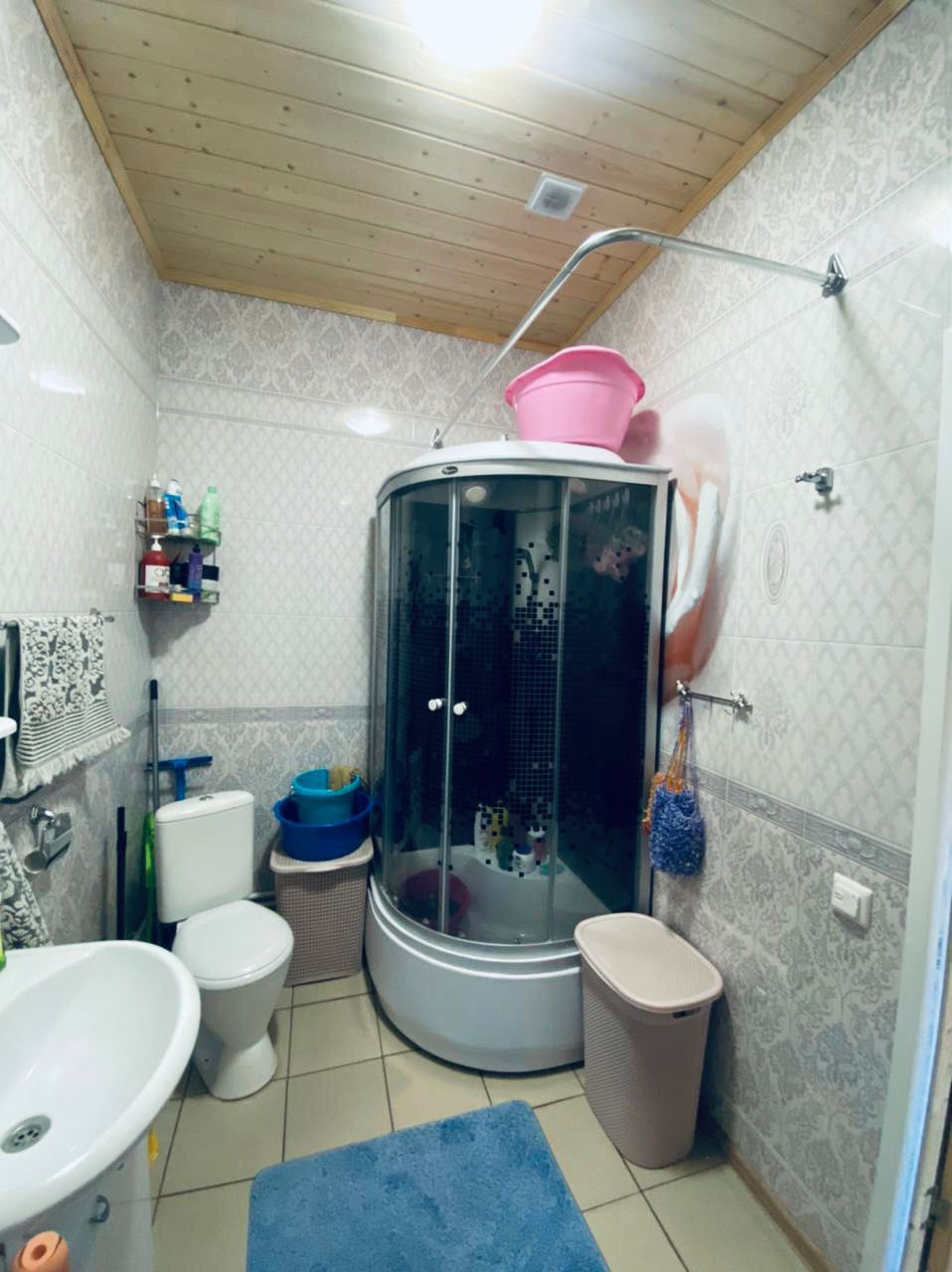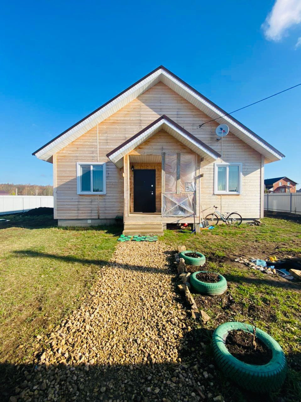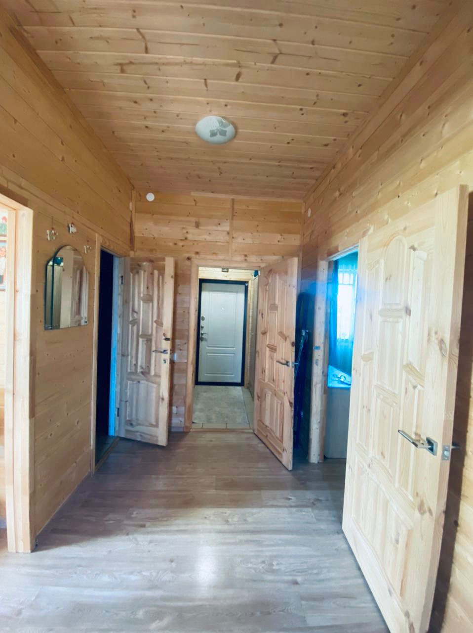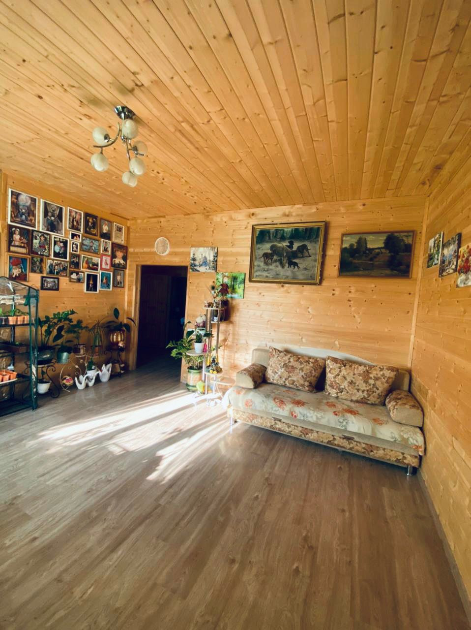 Двухэтажный Каркасный дом площадью 120 кв.м. на участке земли 10 соток. Первый этаж жилой (проживаем второй год), второй в свободной планировке площадью 50 кв.м., можно разделить на 3 комнаты. Стены и потолок Дома обделаны из доски, смотрится очень красиво и натурально, на полу ламинат, санузел стены в панелях и пол в кафеле.
