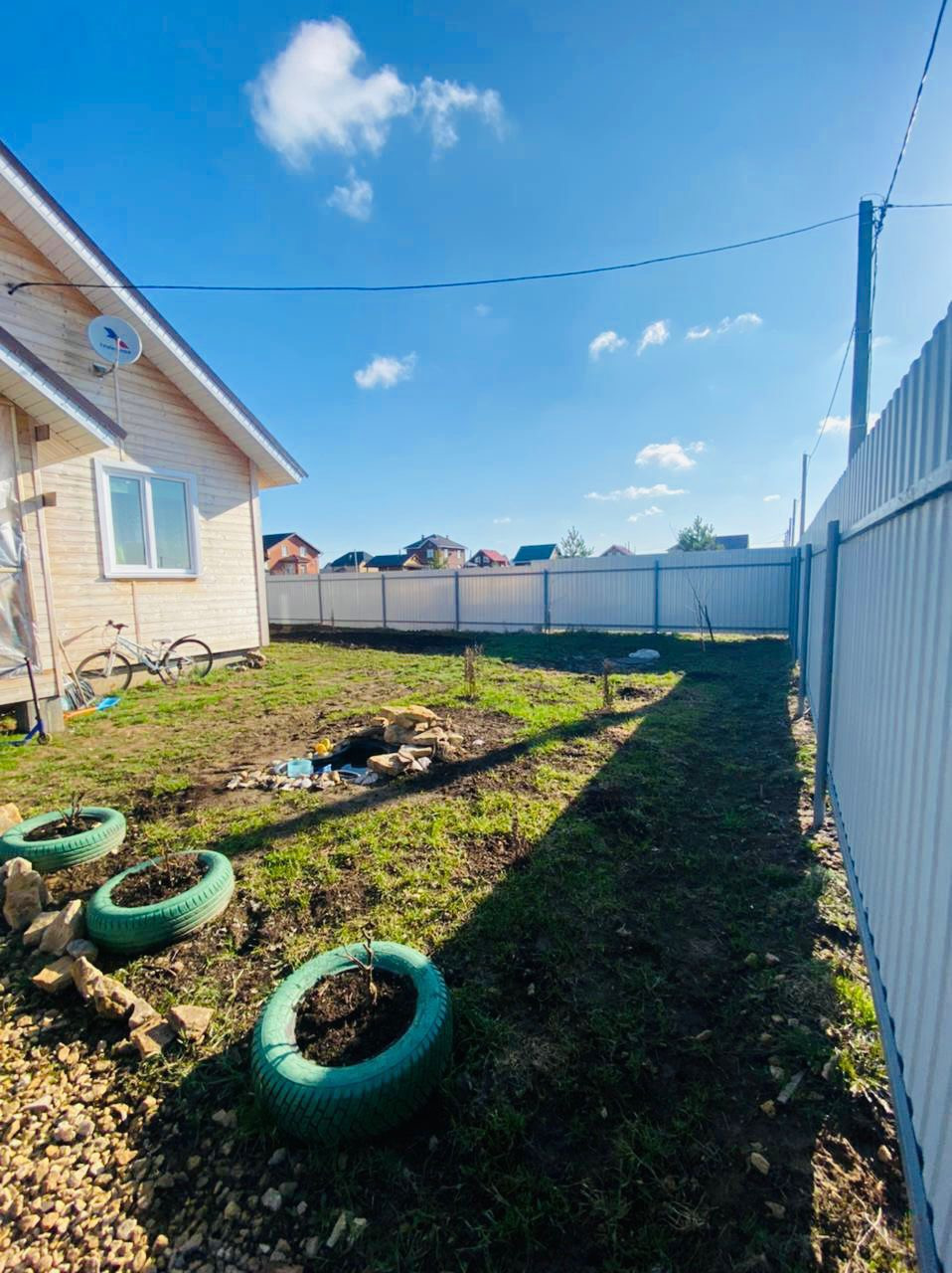 Участок равный, прямоугольной формы, огорожен забором из профнастила, на участке имеются плодоносные насаждения: яблони, слива, малина, крыжовник, смородина и т. д.