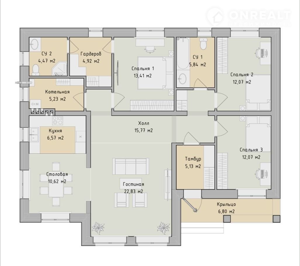 Общая площадь 135 м2