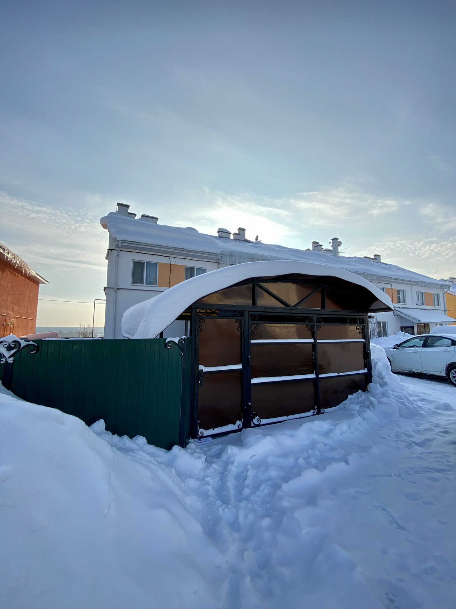 ✅Перед домом сделан навес в качестве гаража для автомобиля. И имеется ещё площадь земли для огорода