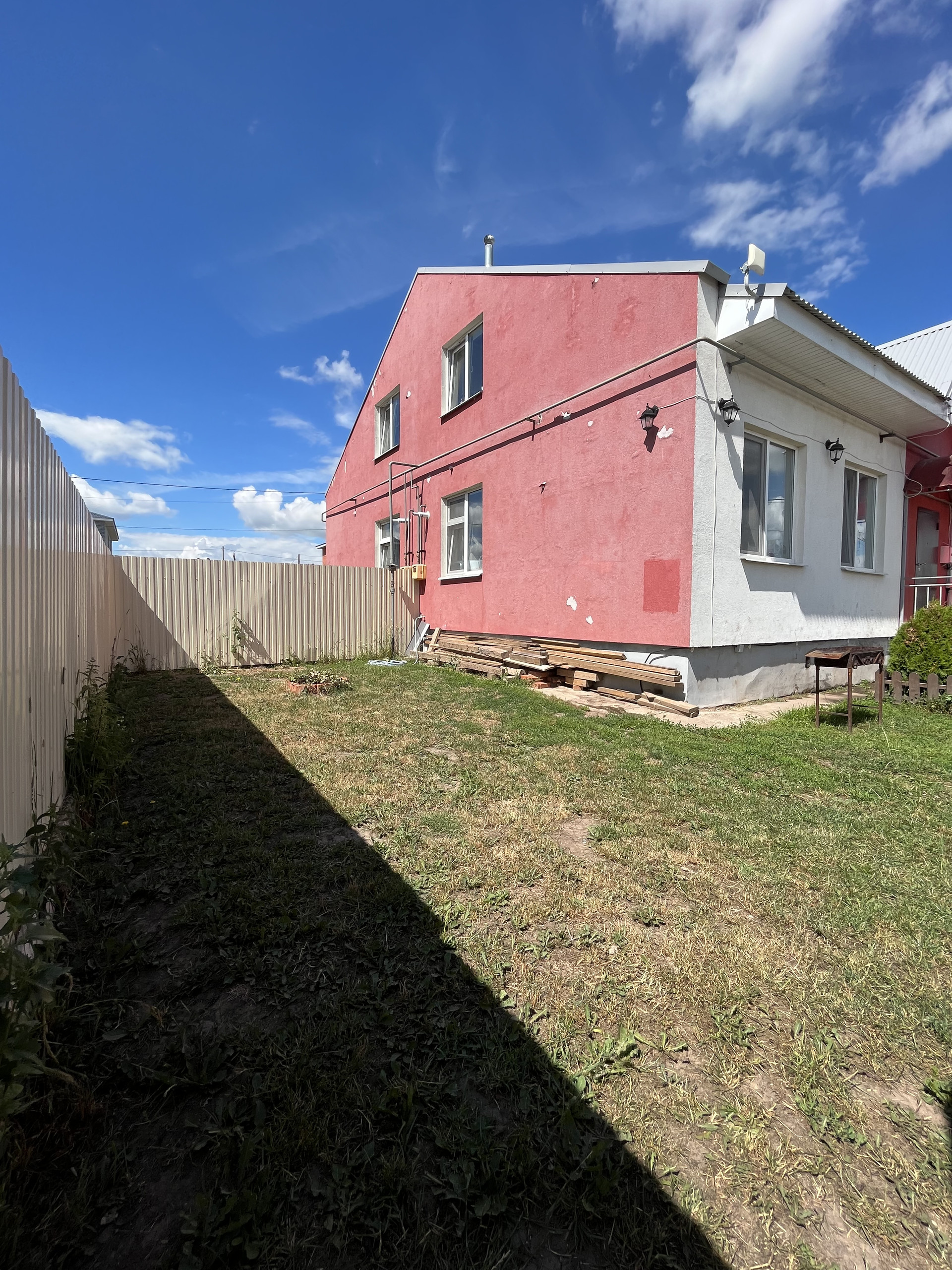 Участок закрыт светлым забором.