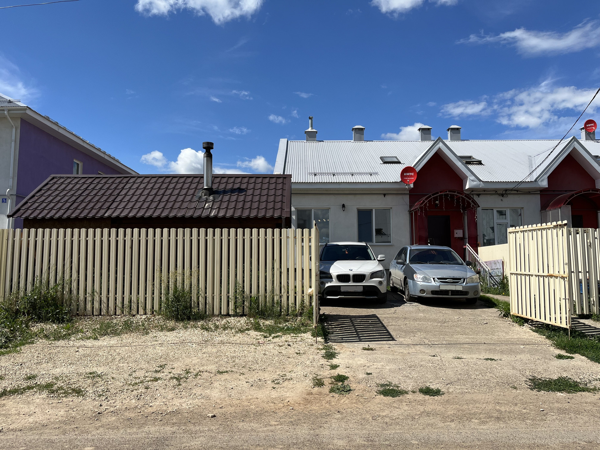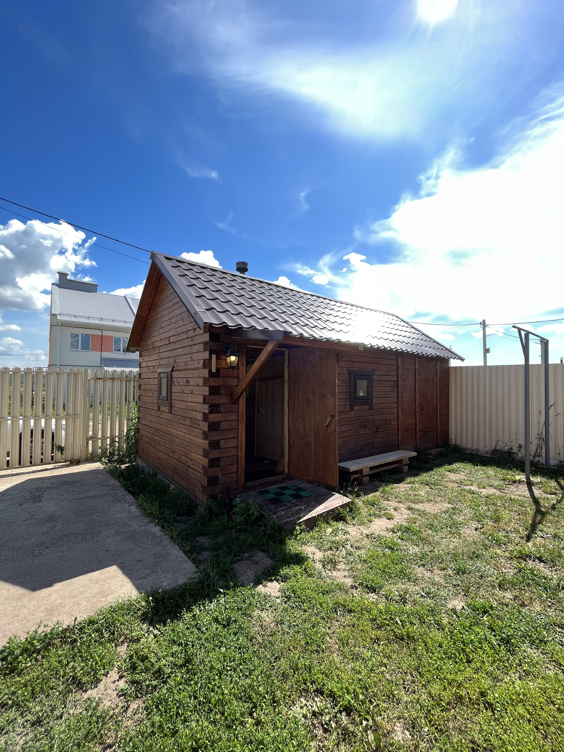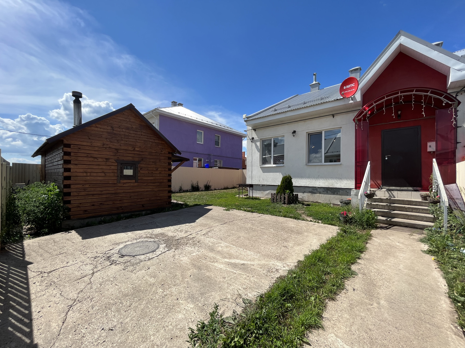 На придомовой территории залита площадка для двух автомобилей и дорожка для чистого доступа от калитки до двери дома. Дополняет территорию новая баня и небольшая кладовка.