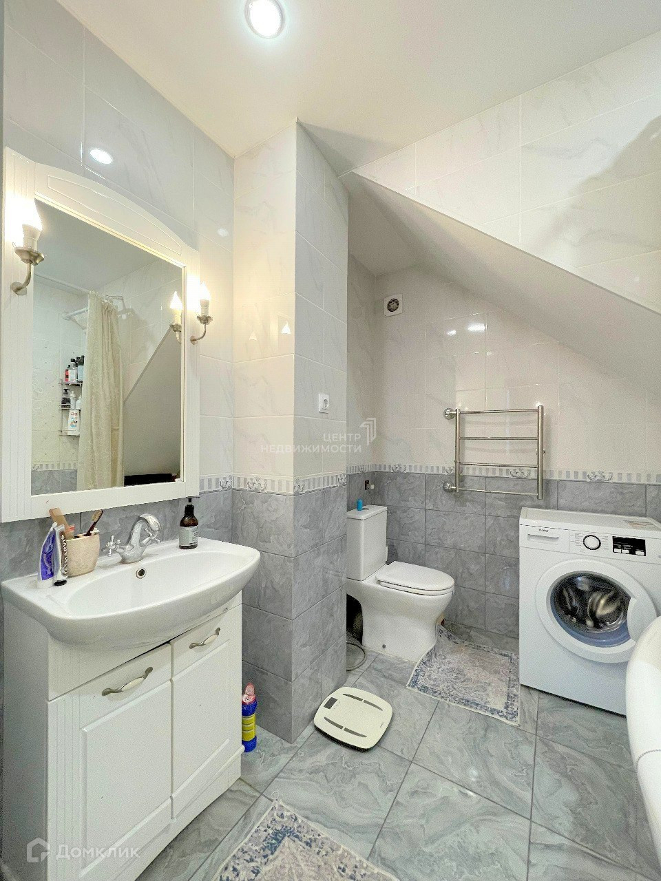 — Санузел совмещенный в современном кафеле;