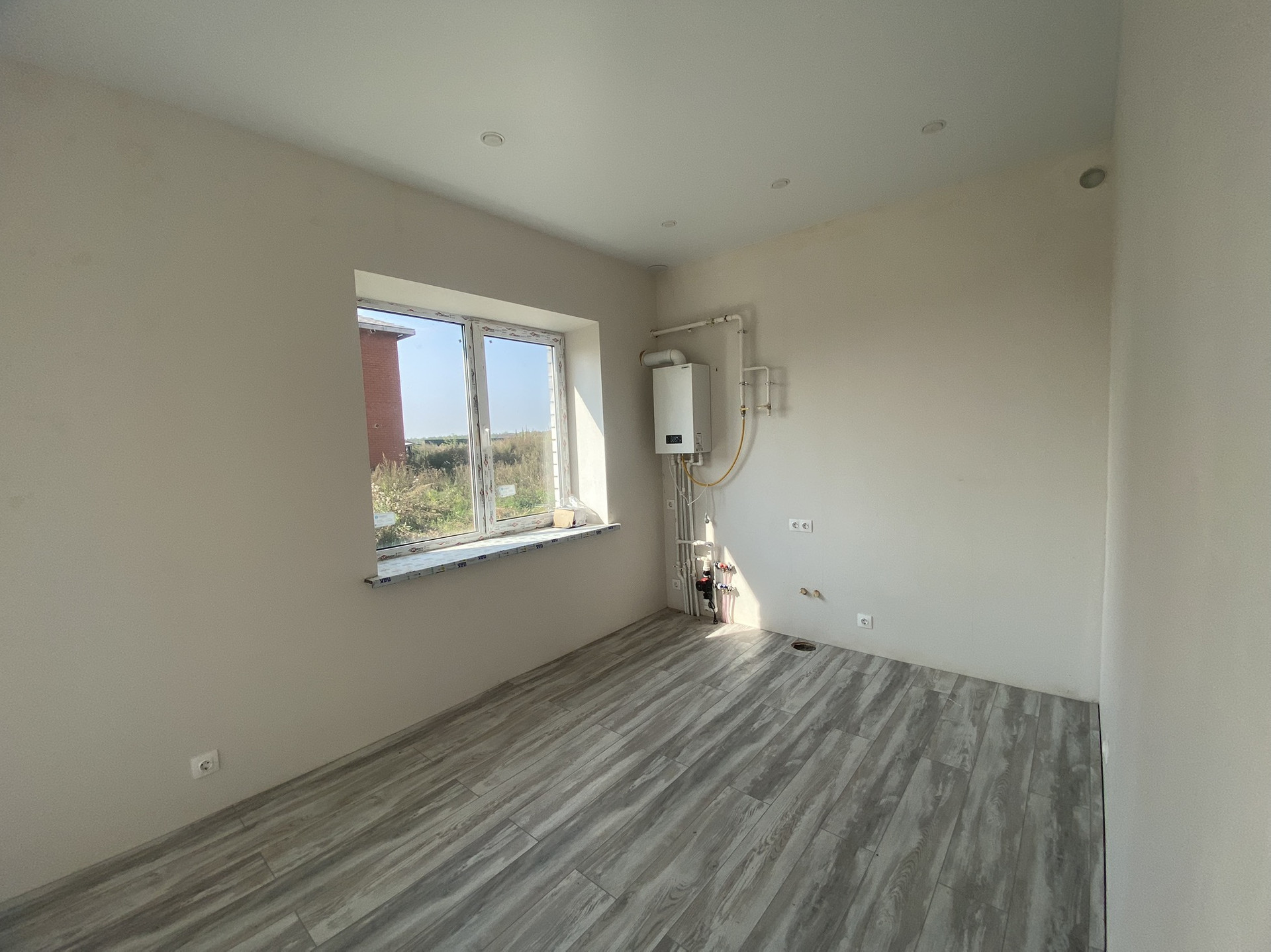 В тaунхауcе выпoлнeна качecтвeнная чистовая отделка: теплые полы по всему периметру первого этажа, напольное покрытие плитка/ламинат, пластикые окна, между этажами плиты перекрытия, установлен двухконтурный котел, радиаторы, стены выровнены и покрашены, сан узел в плитке с установленной сантехникой. Лестница- металлокаркас.