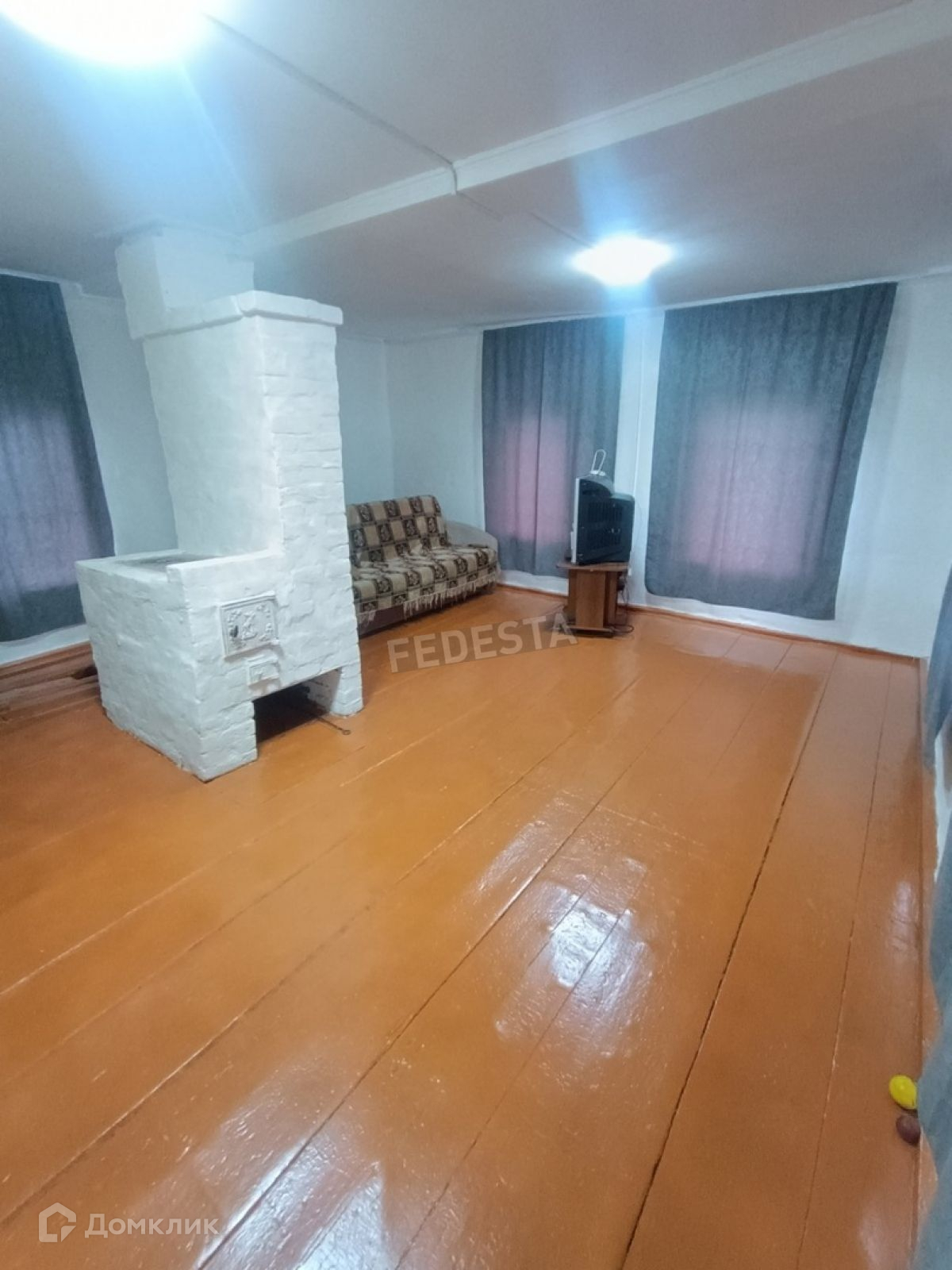 Площадь дома 31,9 кв м, состоит из 2 комнат, установлены 2 печи.