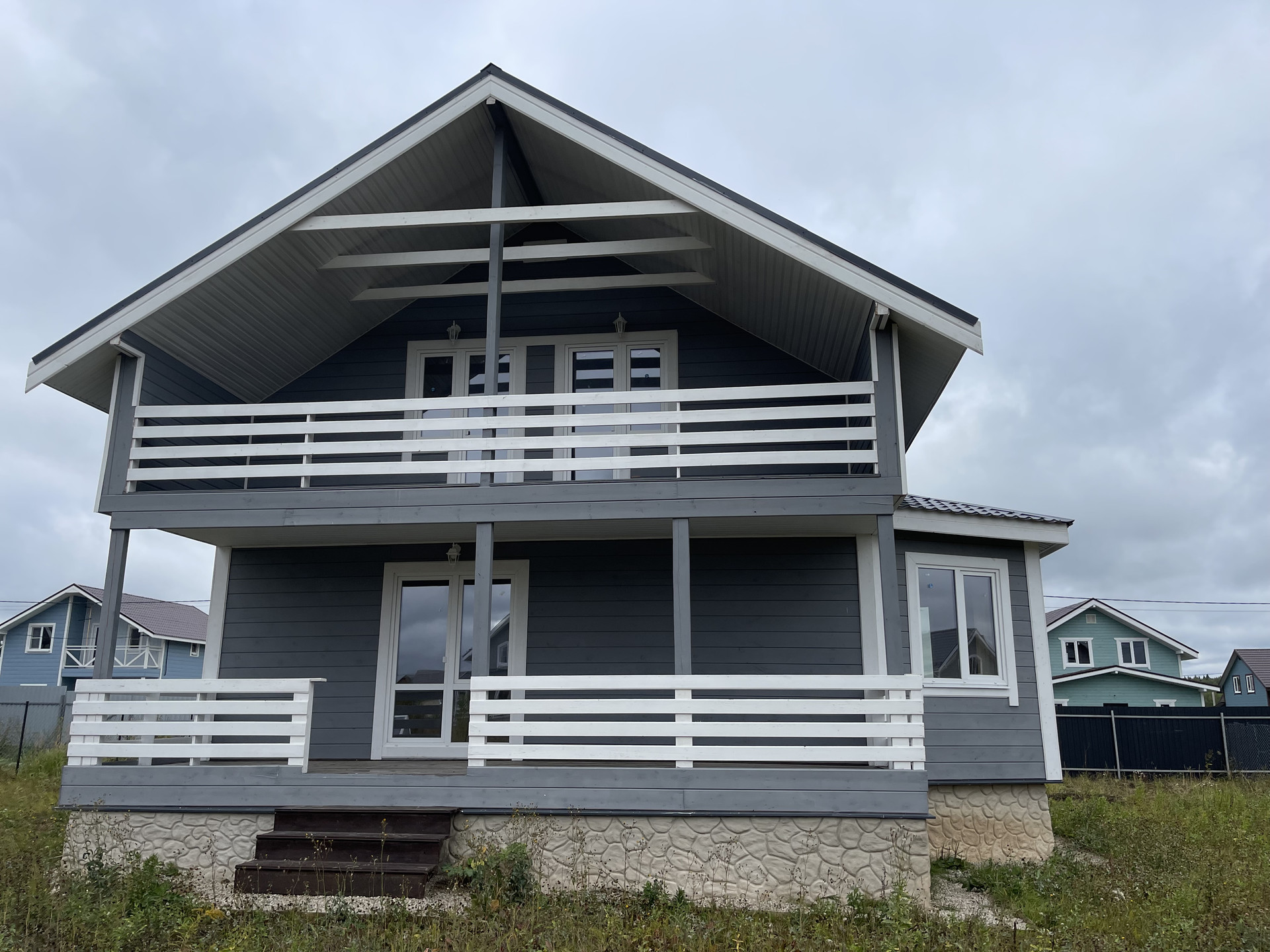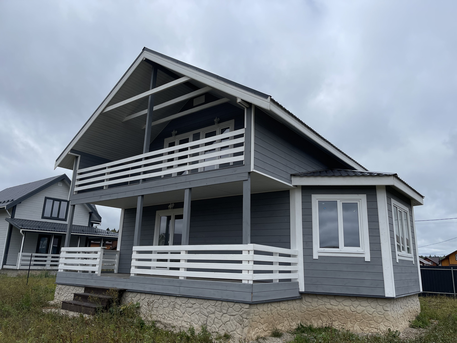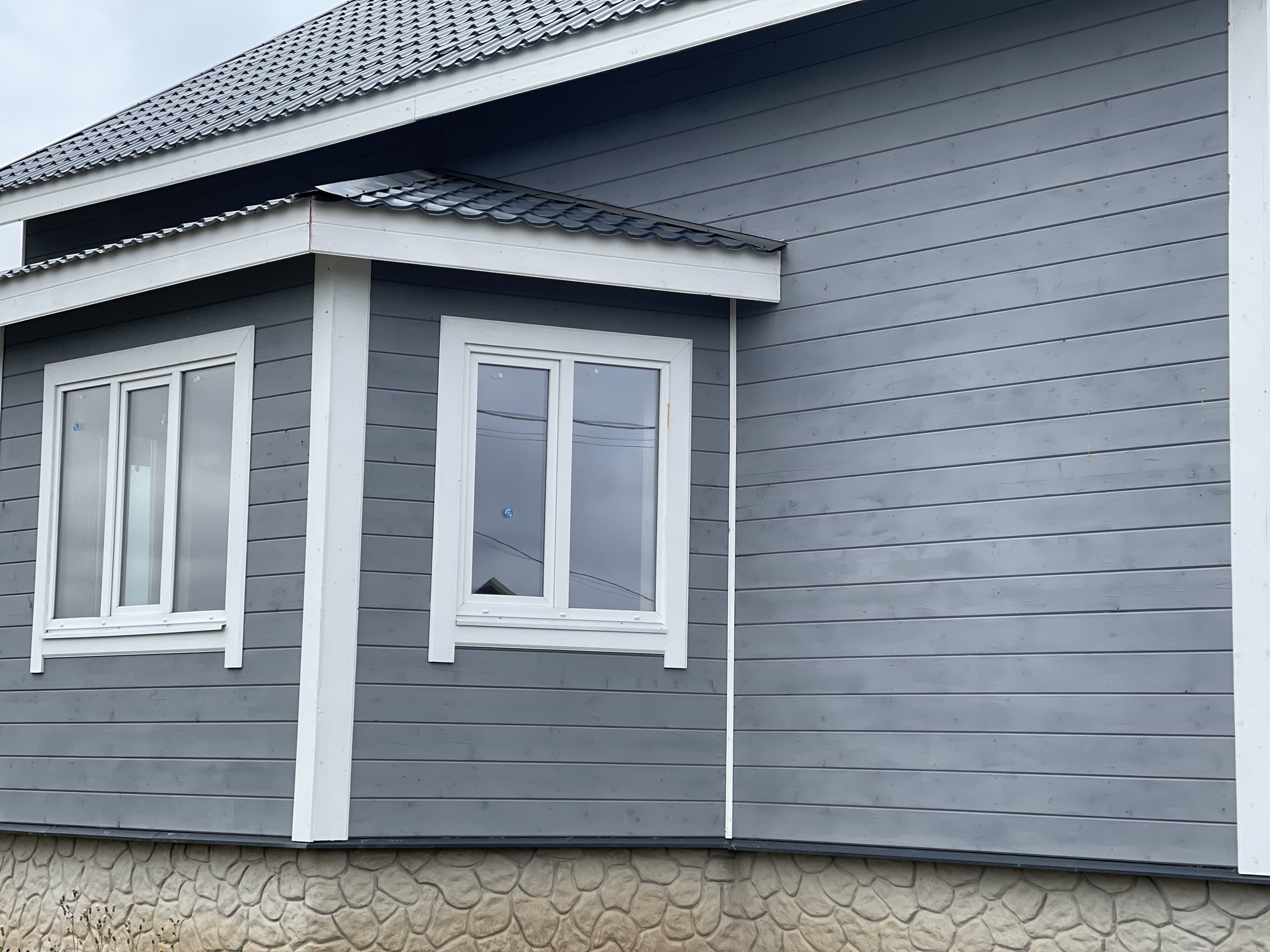 Частный дом под ключ. Фундамент- монолитная бетонная плита, окна - пластиковые стеклопакеты поворотно откидные , крыша – металл черепица. Внутри и снаружи дом полностью обшит имитацией бруса, покрыт снаружи антисептиком и покрашен.