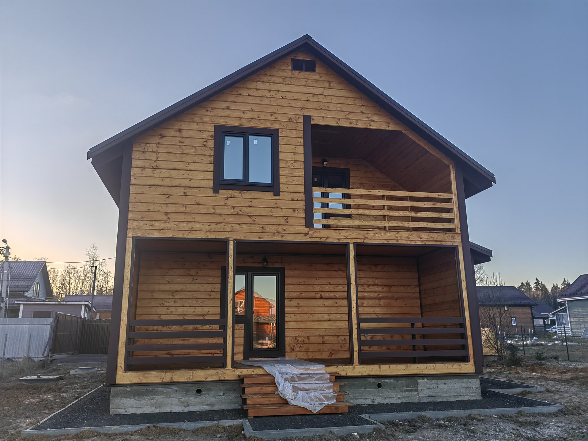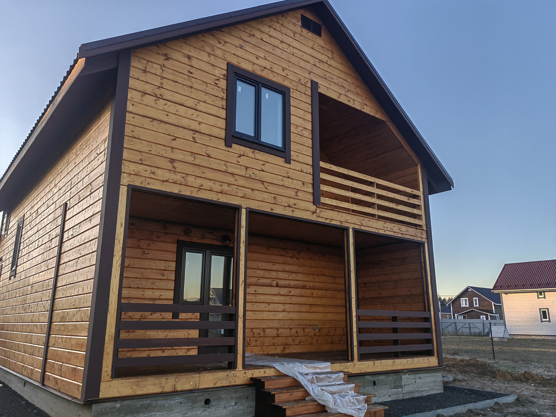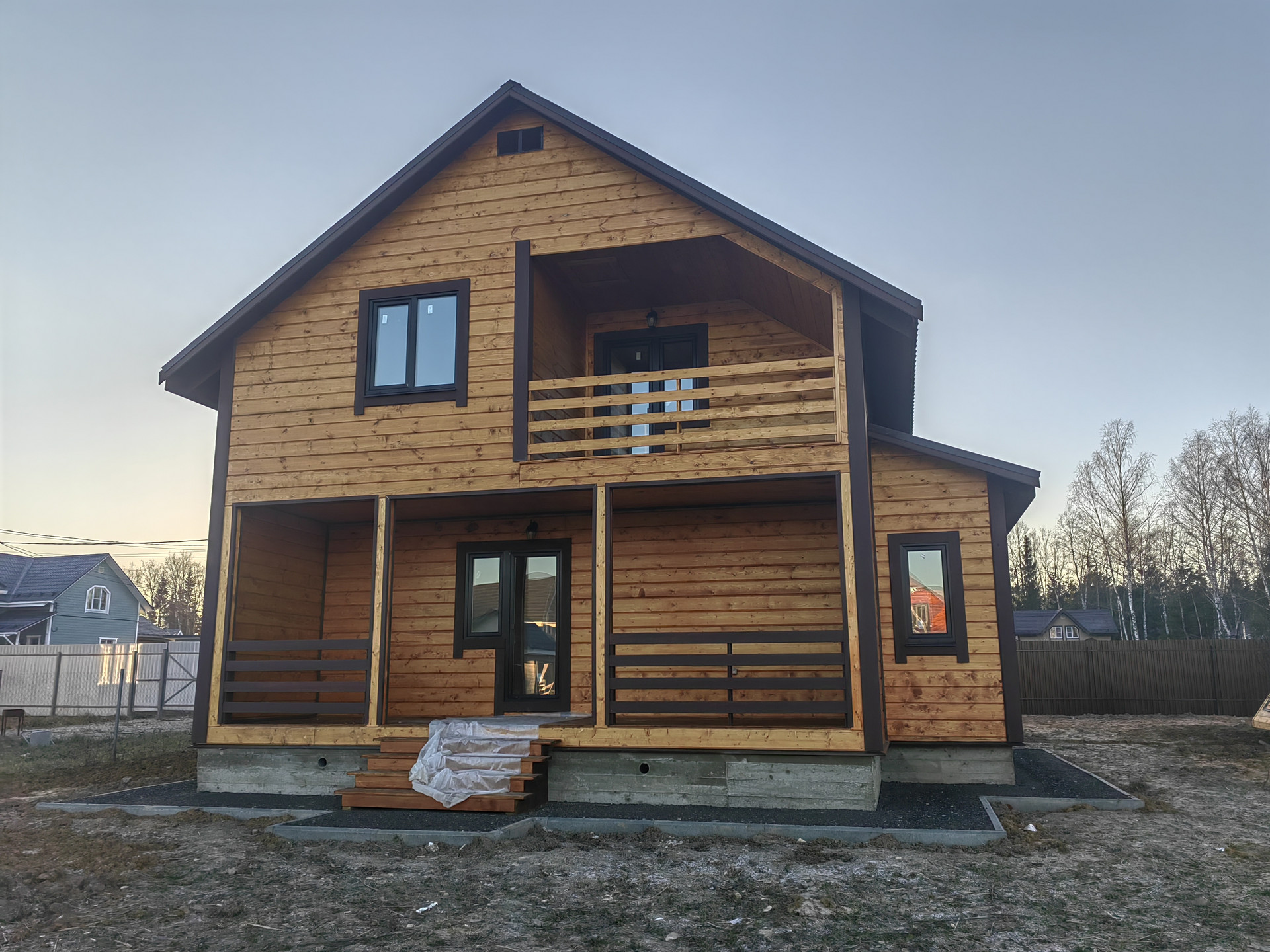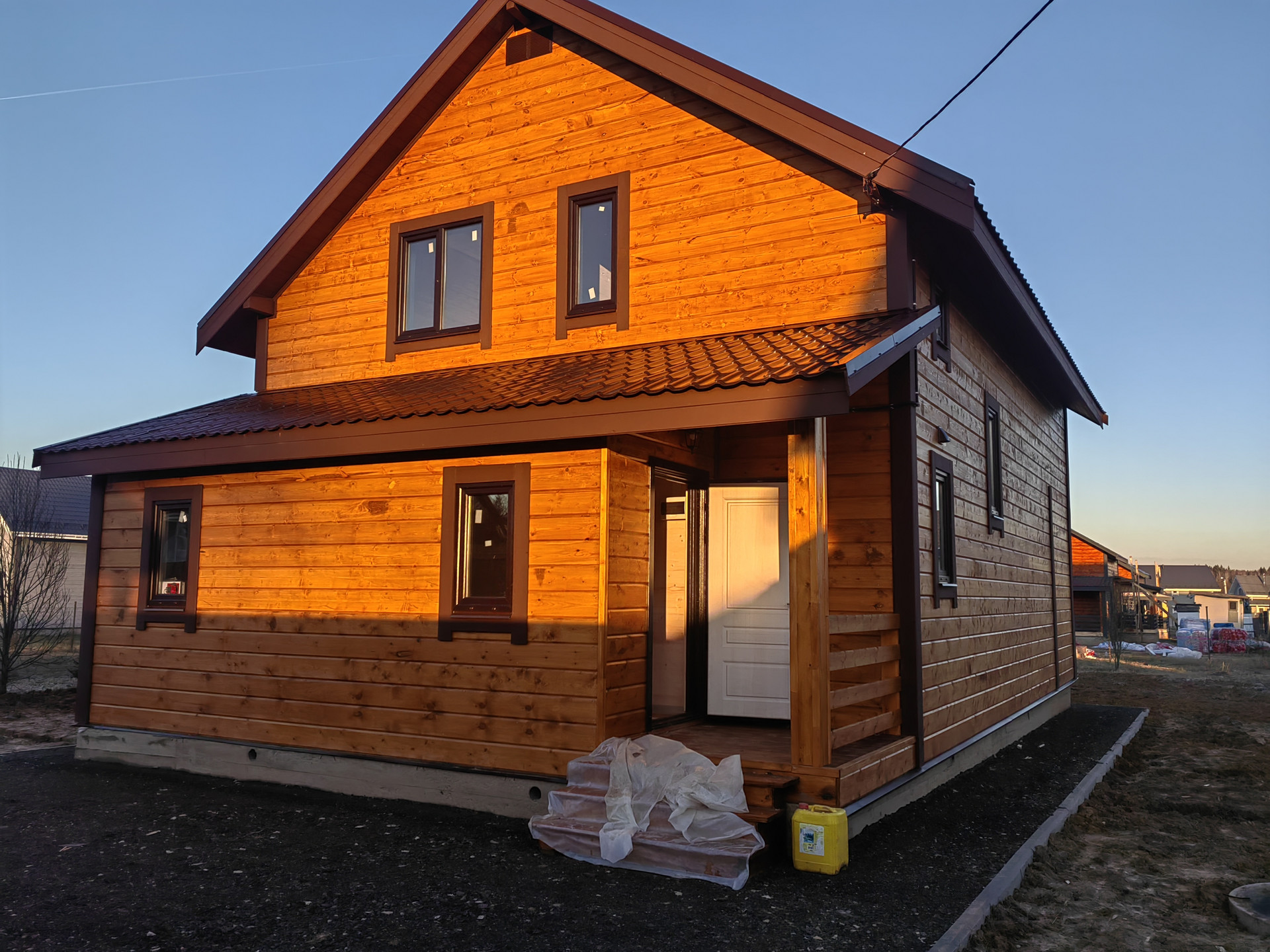 Новый дом в 3 км от города Наро-Фоминска ДПК Загородный д. Чешково , в жилом обществе. Дом 2-х этажный 8 на 8 из бруса утепленный, на монолитном армированном фундаменте. Крыша – метало черепица , надежная железная входная дверь, окна – пластиковые поворотно откидные 3 стекла. Снаружи  и внутри отделка – имитация бруса ,  с паро- гидро - изоляцией.