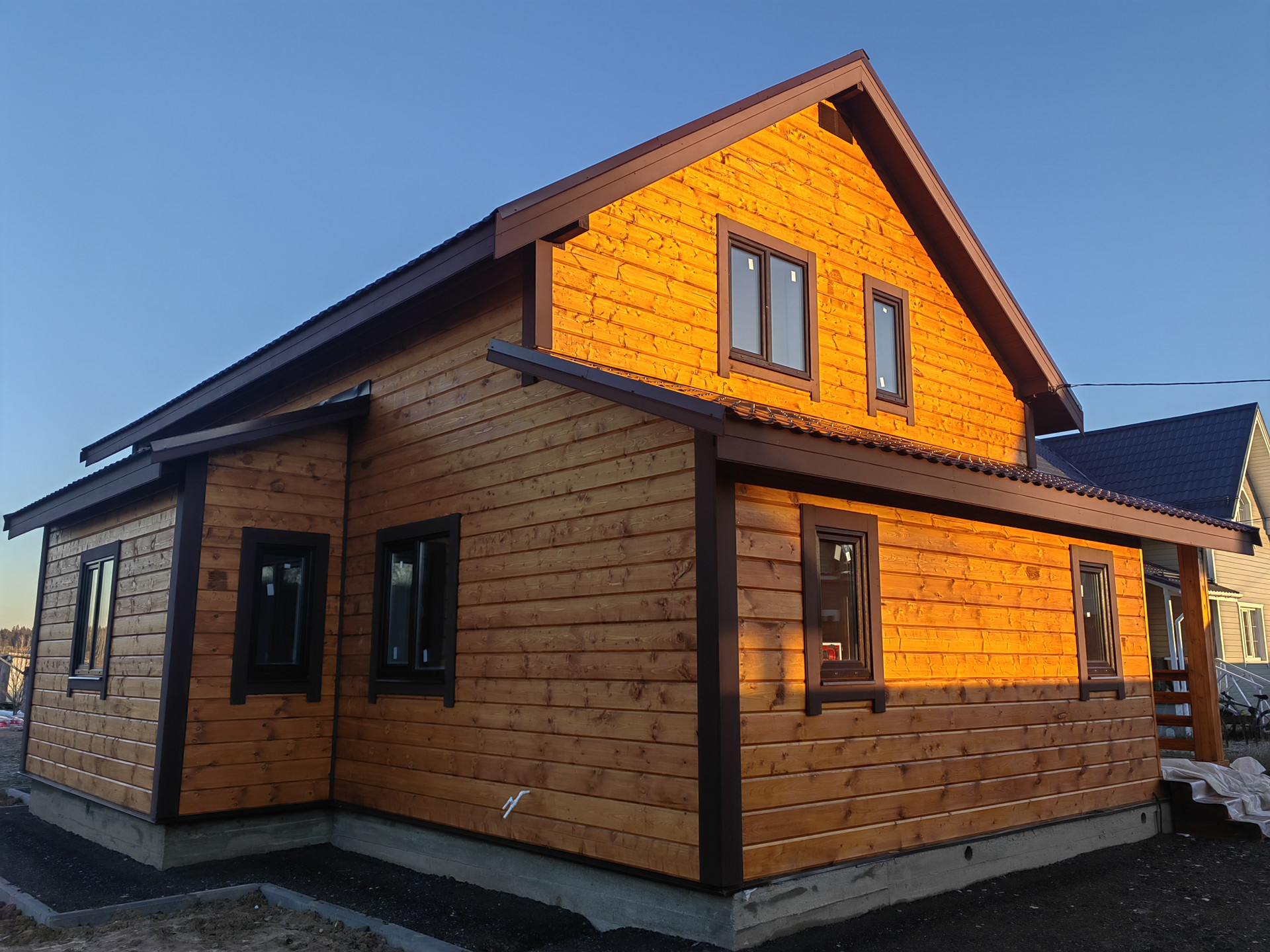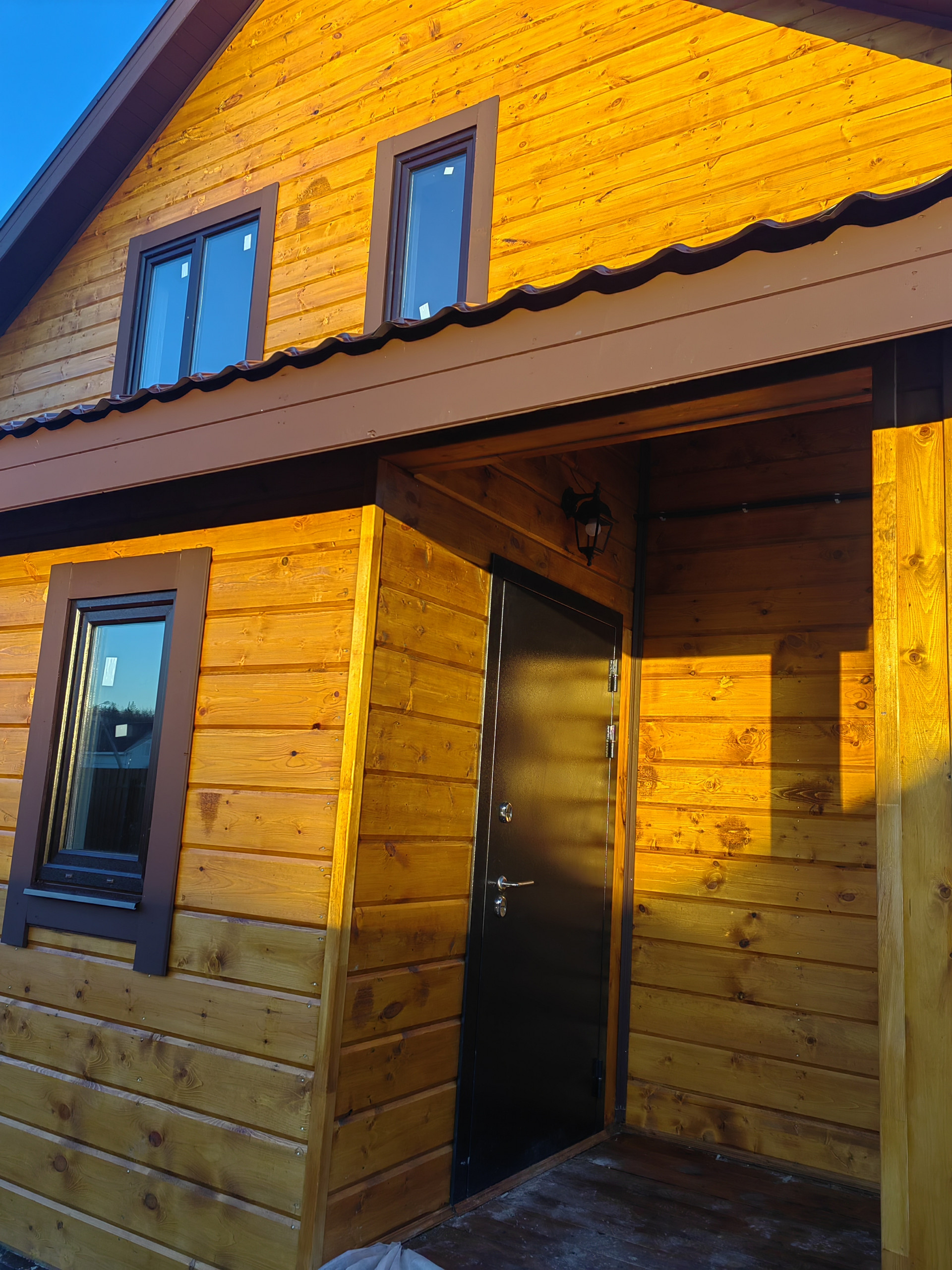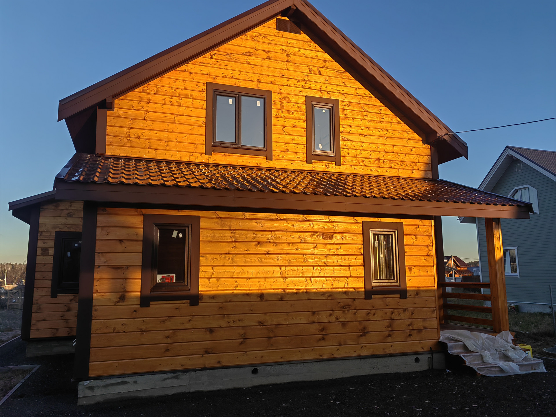 Новый дом в 3 км от города Наро-Фоминска ДПК Загородный д. Чешково , в жилом обществе. Дом 2-х этажный 8 на 8 из бруса утепленный, на монолитном армированном фундаменте. Крыша – метало черепица , надежная железная входная дверь, окна – пластиковые поворотно откидные 3 стекла. Снаружи  и внутри отделка – имитация бруса ,  с паро- гидро - изоляцией.