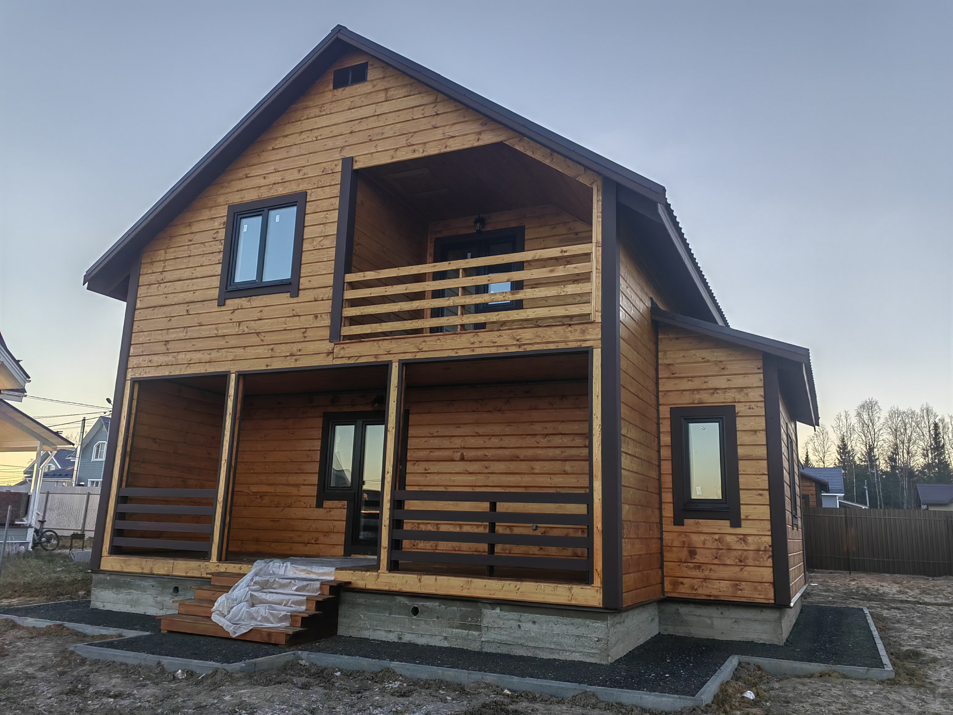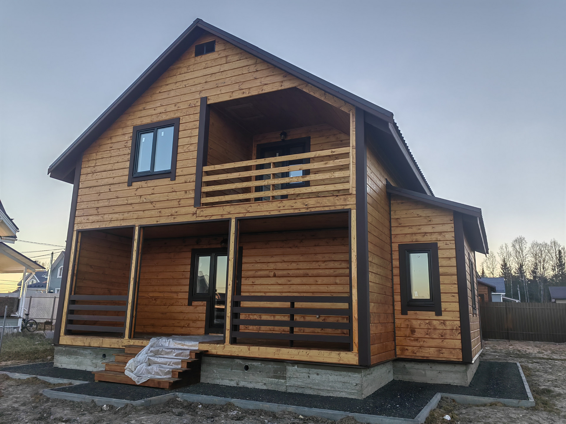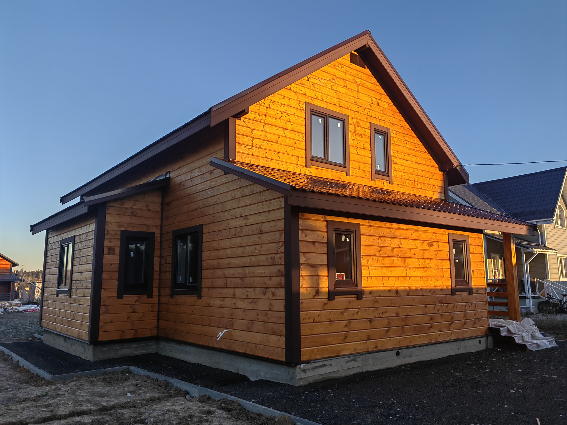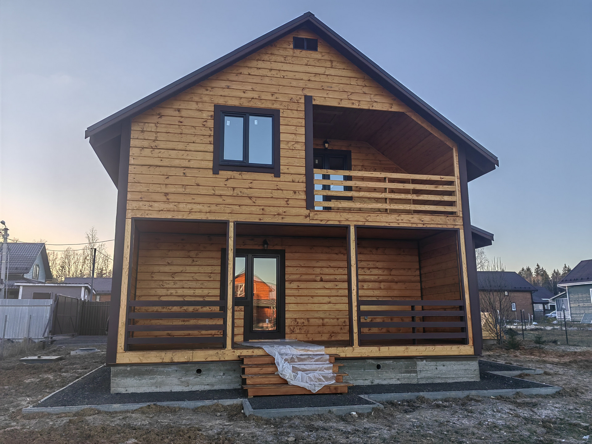 Новый дом в 3 км от города Наро-Фоминска ДПК Загородный д. Чешково , в жилом обществе. Дом 2-х этажный 8 на 8 из бруса утепленный, на монолитном армированном фундаменте. Крыша – метало черепица , надежная железная входная дверь, окна – пластиковые поворотно откидные 3 стекла. Снаружи  и внутри отделка – имитация бруса ,  с паро- гидро - изоляцией.