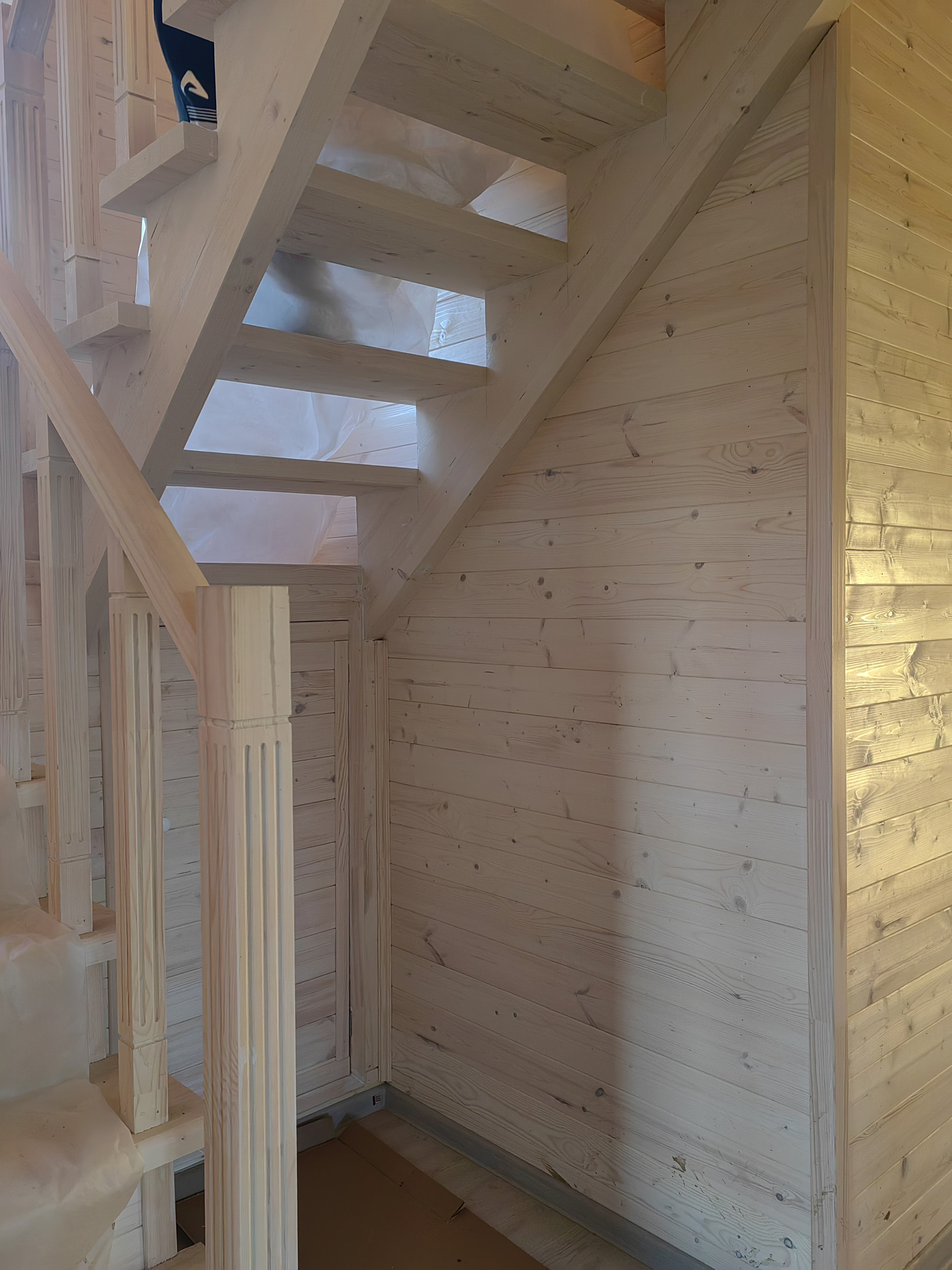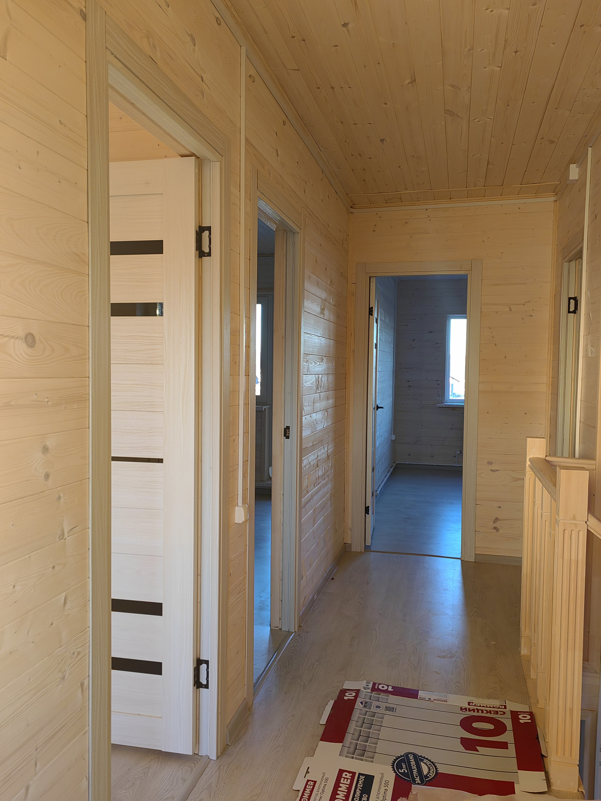 Планировка. На 1-ом этаже: открытая веранда, коридор, санузел (с заведенной водой и канализацией), гостиная и кухня, кладовка, бойлерная, жилая комната. На 2-ом три  спальни и большой холл, второй сан узел.