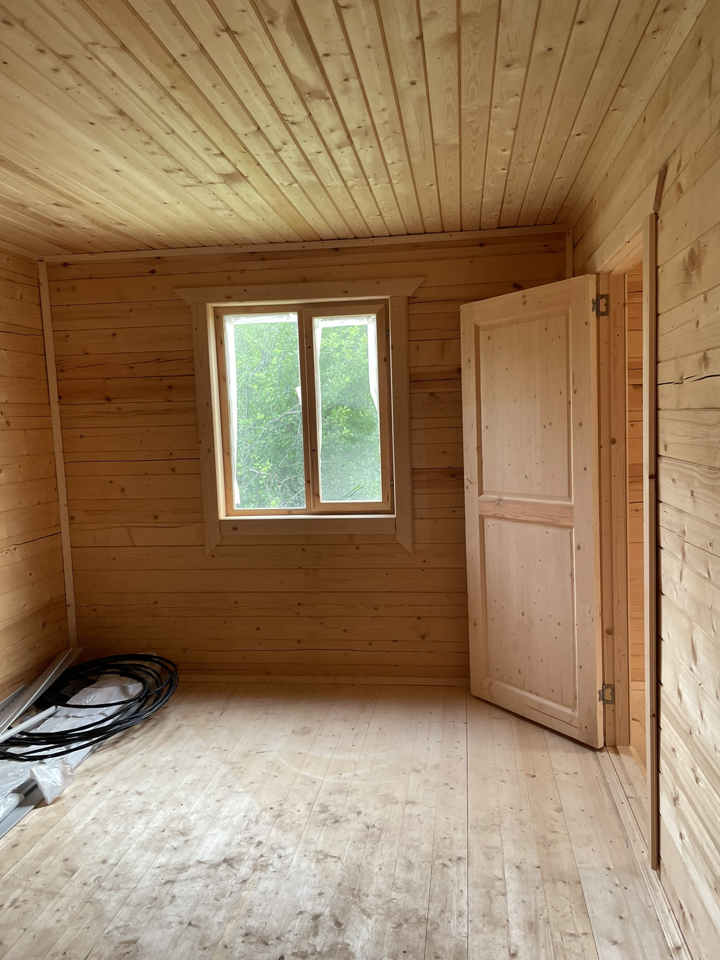 Дом площадью 56,8 м2 построен из бруса для круглогодичного проживания в 2023 г.  на участке ИЖС 10 соток. К дому пристроена большая закрытая терраса (обшита сайдингом) - можно утеплить и увеличить жилую площадь дома. Общая  площадь дома с террасой 125,6м2 - эта площадь зарегистрирована в ЕГРН. Дом расположен в д. Чешково Наро-Фоминского г.о., взносов за проживание нет. Подключено электричество 3 фазы 15 кВт.