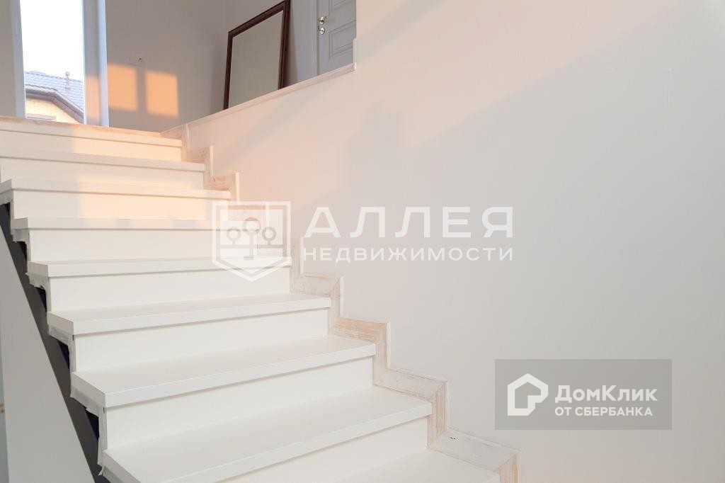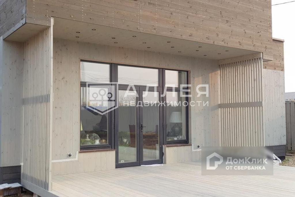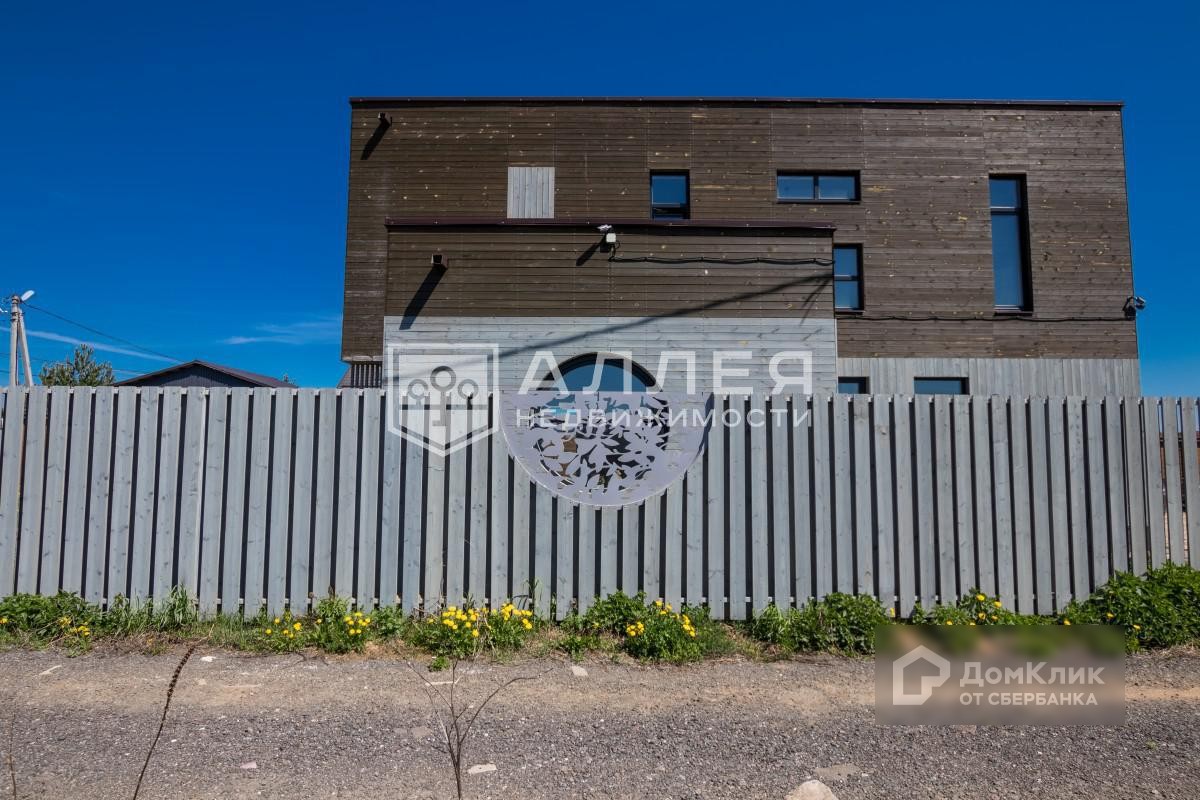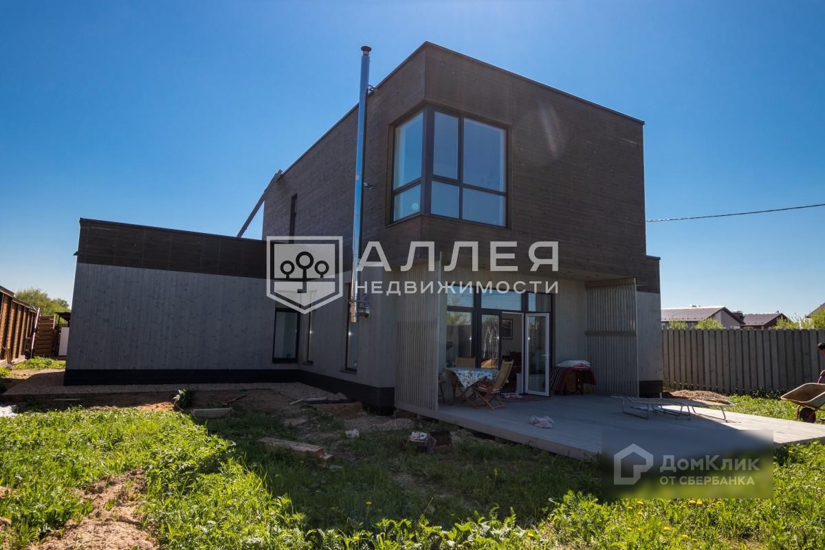 Дом: Новый коттедж  в современном архитектурном стиле расположен в центре деревни. Деревня в большей степени застроена современными домами, подъезд асфальтирован. Дом построен по индивидуальному проекту, особенностями которого являются панорамные окна, эксплуатируемая кровля и просторная зона кухни-гостиной с выходом на участок. Фасад декорирован деревом, забор и входная дверь украшена элементами металла. Дом готов к проживанию: все коммуникации разведены, сделаны водяные теплые полы, уложена плитка,  в санузлах установлена сантехника. Положительных эмоций добавляют два выхода на эксплуатируемую кровлю, расположенные по разные стороны дома. Здесь можно обустроить полноценную зону отдыха с красивыми  видовыми характеристиками.