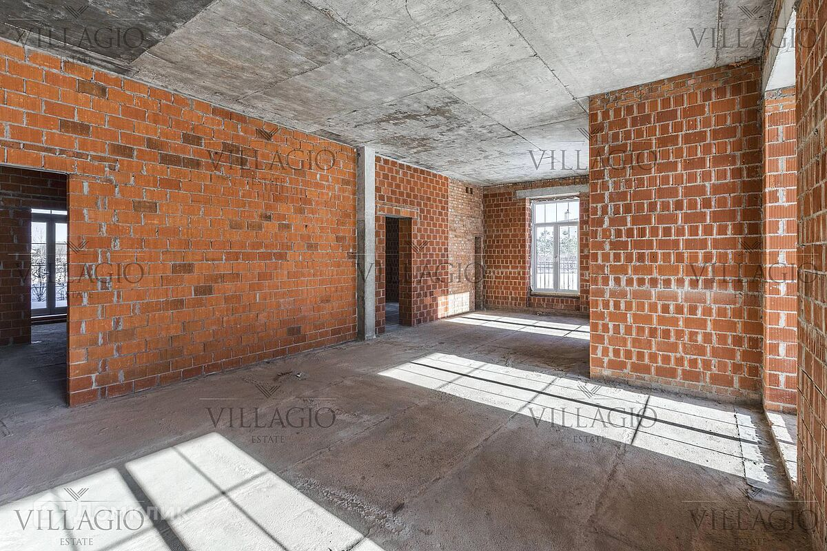 Особняк в классическом стиле, расположенный в 3 минутах прогулки до большого парка с озером. Планировка дома не определена, что позволяет наполнить комнаты своим уникальным стилем. Планировка дома создана с учётом особенностей жизни на природе, так чтобы вы и ваши близкие были окружены солнечным светом и комфортом. Дом спланирован с панорамными окнами в каждой комнате, большой террасой на первой этаже, на которую выходят три комнаты, и балконами.В доме возможно создать кабинет и четыре спальные комнаты с собственными ванными и гардеробными. Из них две спальни спланированы с собственными балконами.Для бо́льшего спокойствия и комфорта хозяев, квартира для персонала и тёплый гараж на 2 авто расположены в отдельном крыле дома. Дом подключен к центральному газоснабжению. Конструкцию особняка отличает премиальное качество строительства, благодаря чему внутри комфортно и безопасно даже в самые холодные и дождливые дни! Стены из натурального кирпича и монолитные перекрытия берегут уют и тепло в доме от шума, холода и капризов природы.  Создать гармоничный ландшафтный дизайн позволяют ровный рельеф и прямоугольная форма участка площадью 14,25 соток.