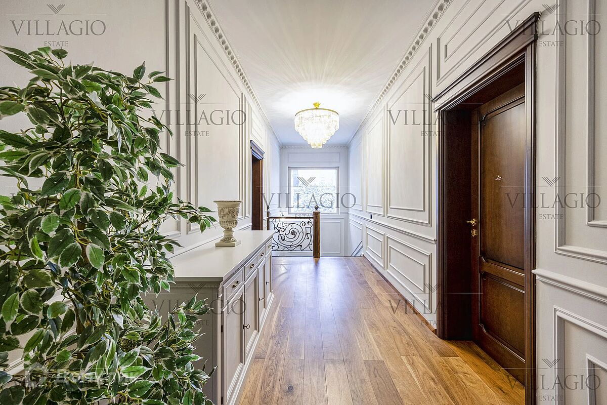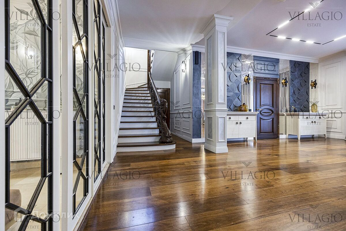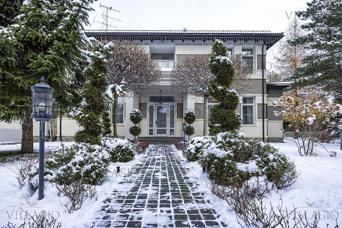 Новорижское шоссе, Резиденция Бенилюкс. К продаже предлагается 2-х этажный дом на большом участке 30 соток. Площадь дома 630,5 кв.м. Дата постройки 2006 год, кап.ремонт - 2013 год, в 2021 году была актуализирована и изменена концепция интерьеров дома , произведены фасадные работы . На участке выполнен ландшафтный дизайн с прудом, водопадом. Помимо основного дома, имеется дом для персонала на 2 квартиры, площадь дома 180 м.кв. Хаммам, финская баня. На территории обустроена зона барбекю. Планировка основного дома: 1-й этаж: прихожая с большой гардеробной, с/у, прачечная, бойлерная, кухня-столовая, гостиная, кабинет, просторная игровая комната. 2-й этаж: три большие спальни с ванными комнатами и гардеробными. Из каждой комнаты выход на балкон. Имеются еще две спальни с одной ванной комнатой и гардеробной. В доме гараж на три машины. Также имеется парковка на 3-4 машины под навесом. При отделке дома использовались качественные дорогостоящие материалы. Полы и стены в с/у - натуральный мрамор, пол 1-го этажа - половая доска, орех, пол 2-го этажа - половая доска из дуба. Встроенная мебель в гардеробных, кухне, кабинете, двери - исключительно натуральное дерево. Мебель ручной работы. Дом полностью оборудован для комфортного проживания.