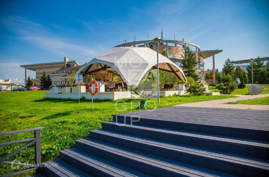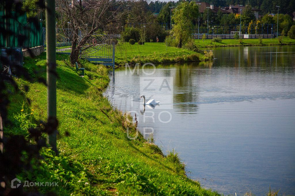 На участке 43 сотки проведены ландшафтные работы, обустроен спуск и берег реки, детская площадка, вертолетная площадка (поле для игры в футбол), открытая терраса.