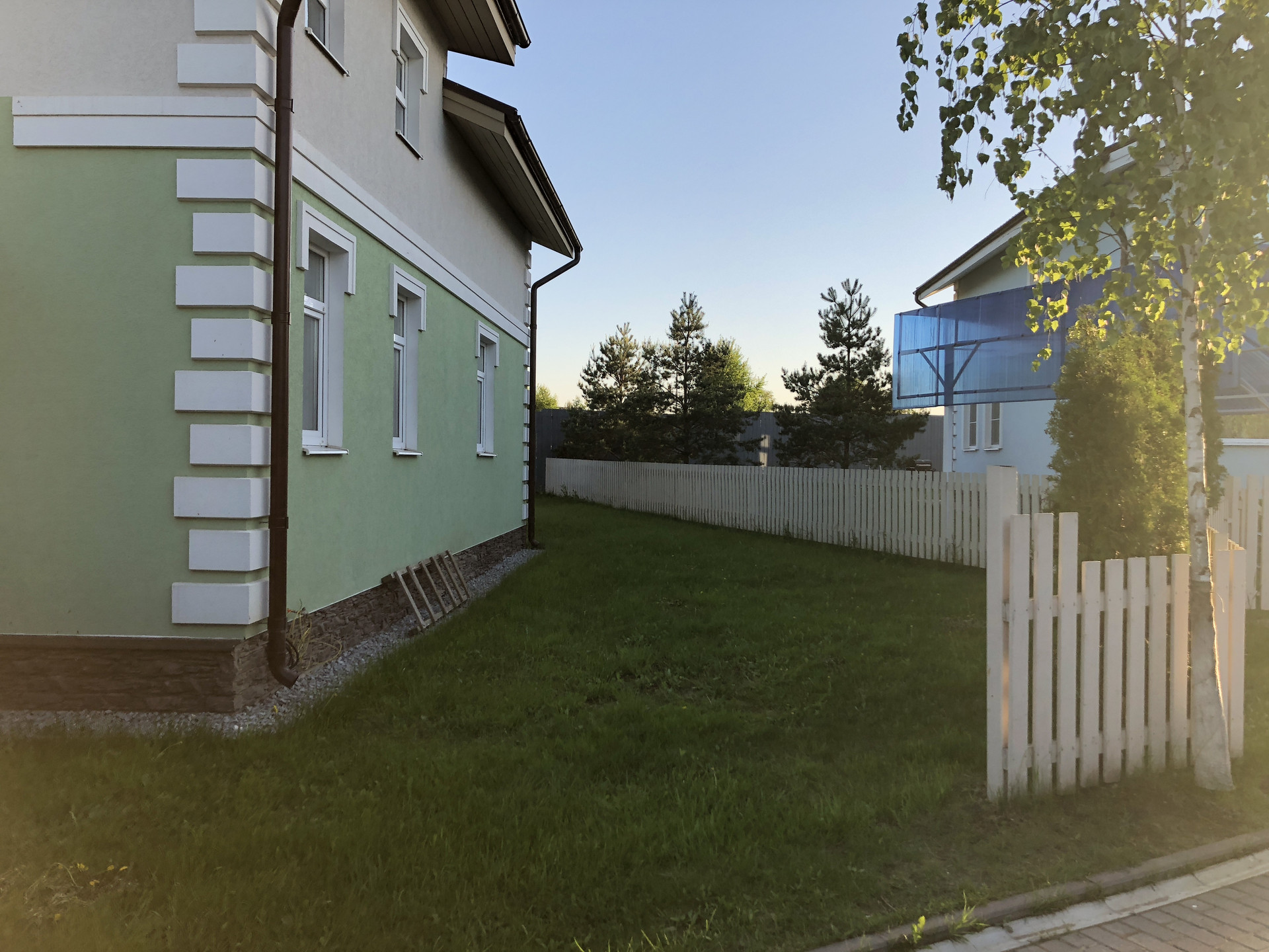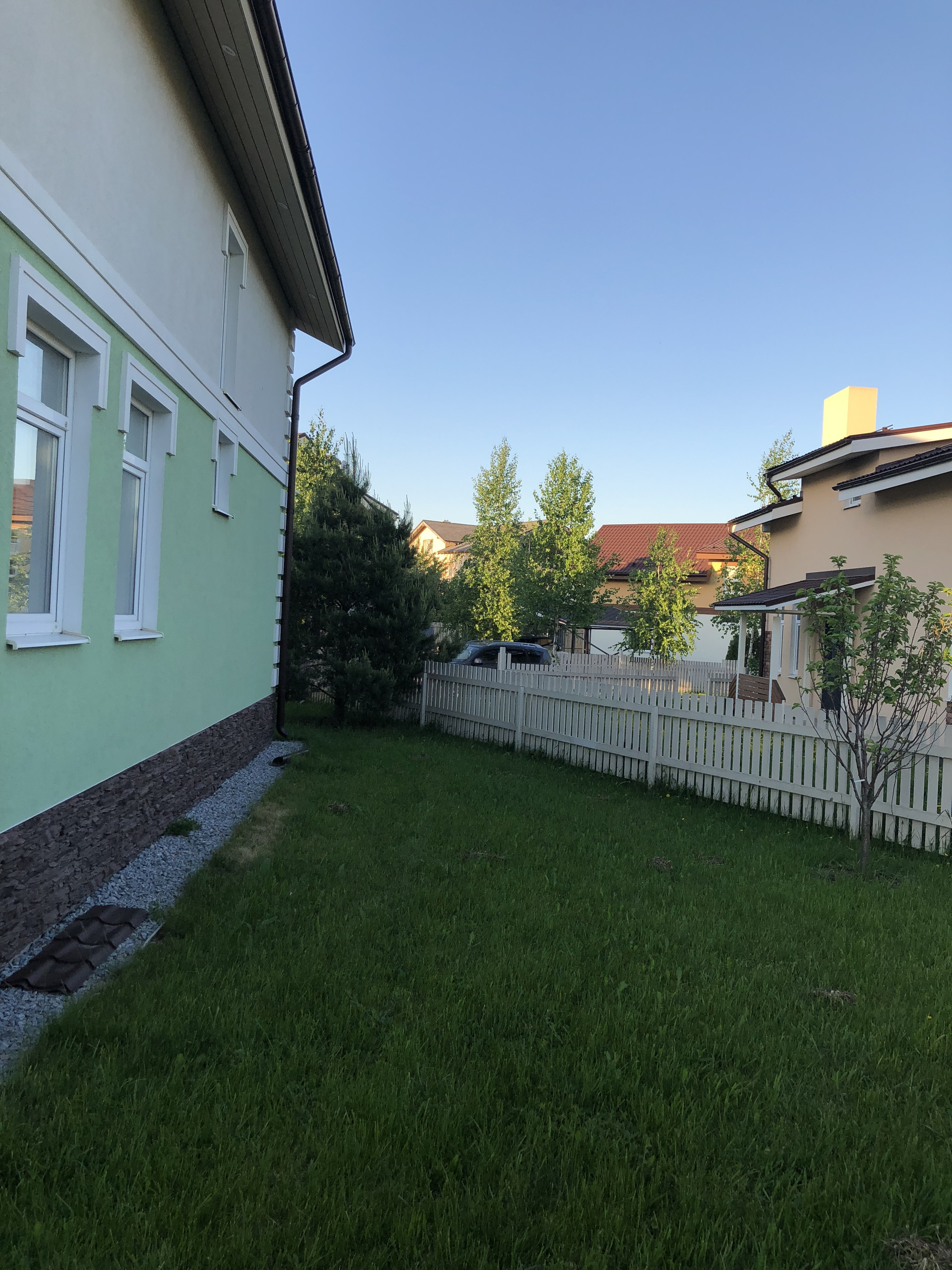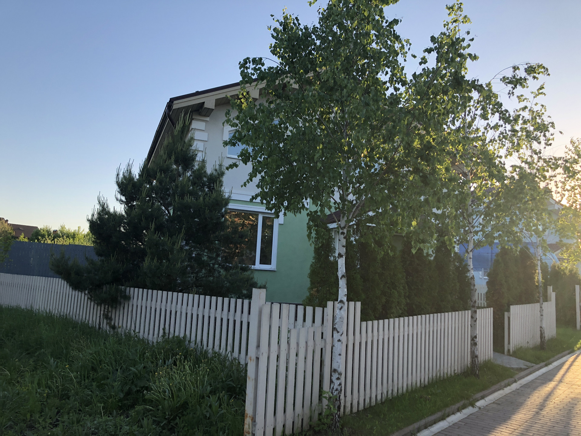 Не большой посёлок на 9 домов в европейском стиле. Общая территория с детской площадкой. Автоматические ворота. Есть охрана и помошник по хозяйству. Поселковые сборы 8000₽+электричество.