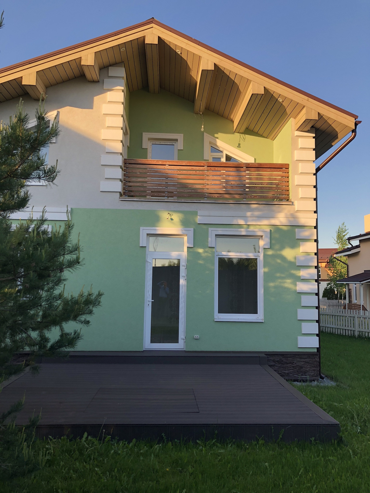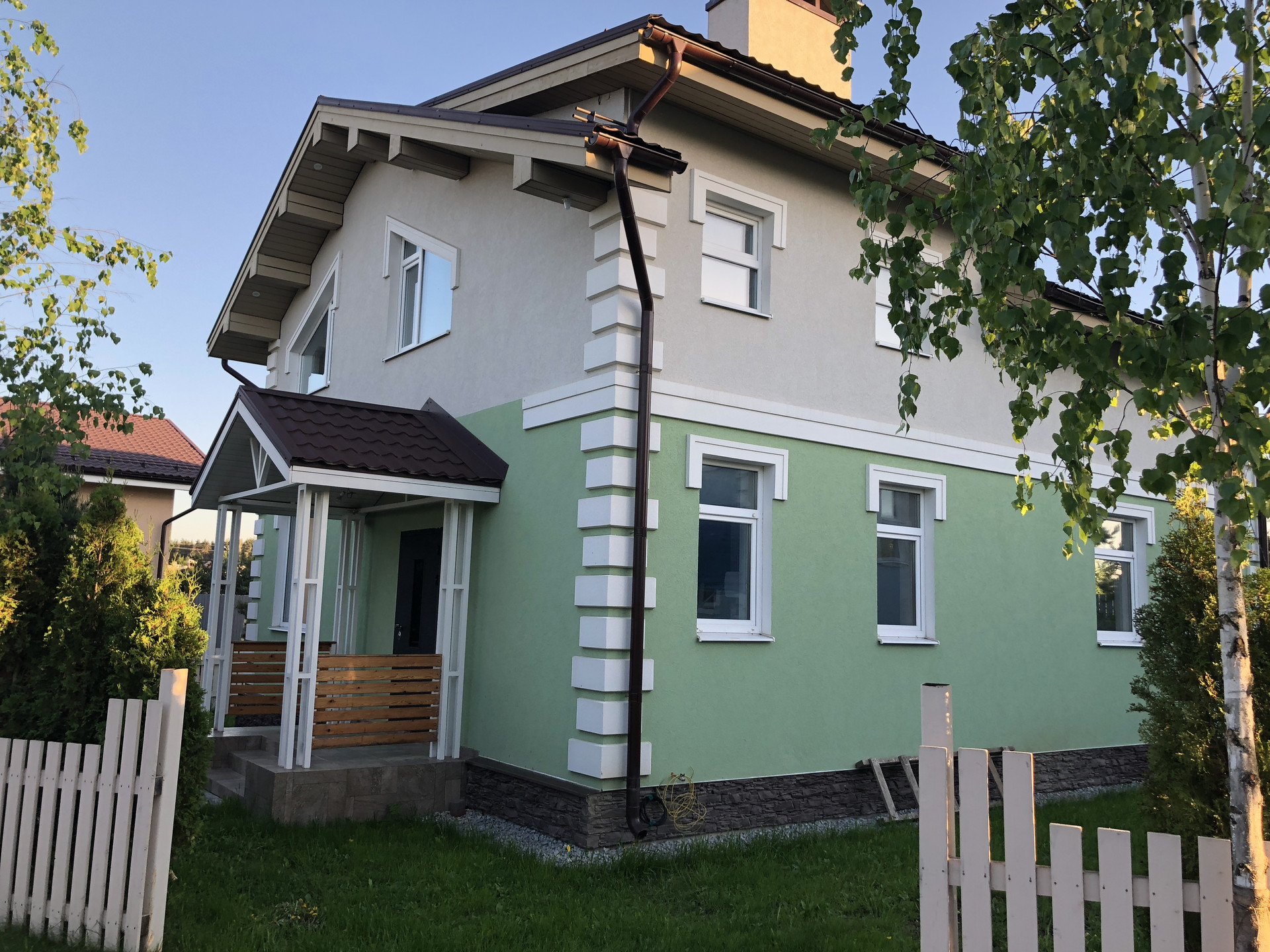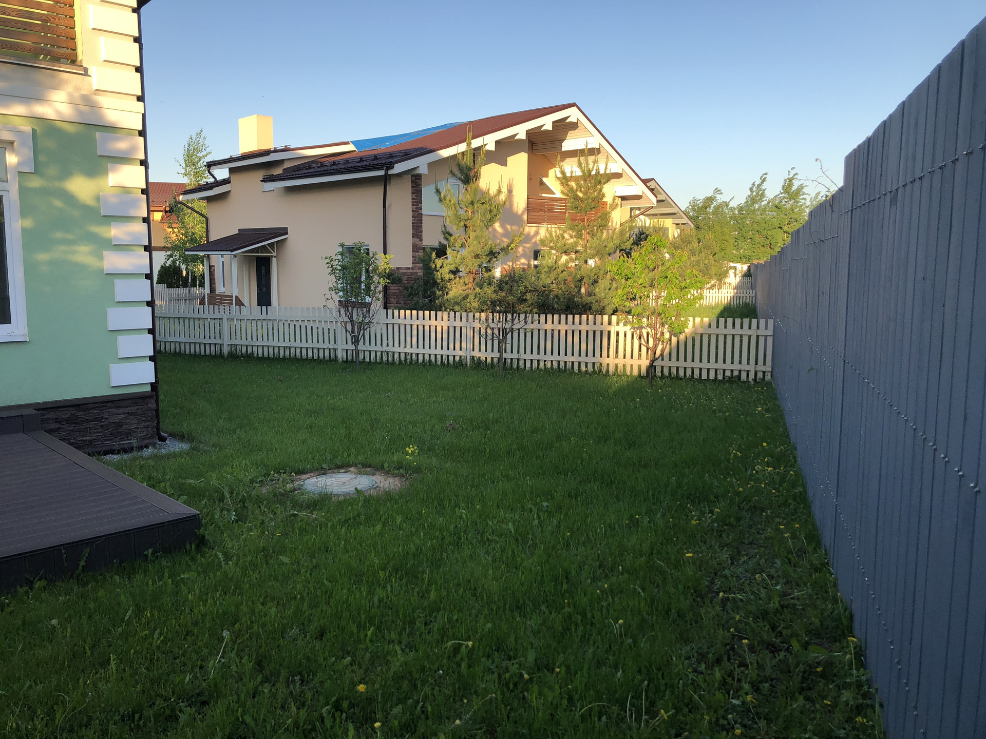 Не большой посёлок на 9 домов в европейском стиле. Общая территория с детской площадкой. Автоматические ворота. Есть охрана и помошник по хозяйству. Поселковые сборы 8000₽+электричество.