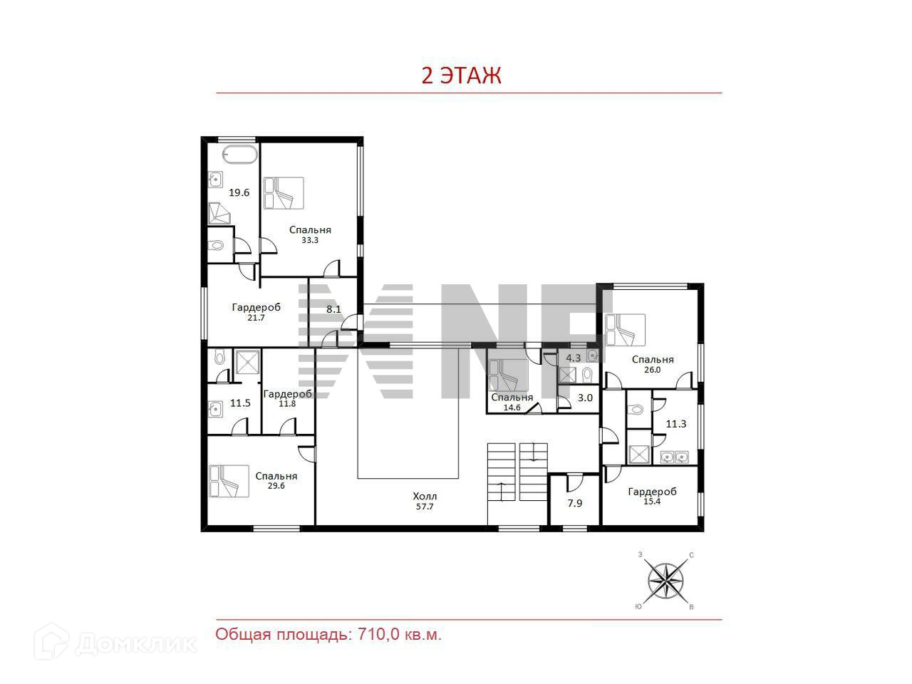 2 этаж: холл, 4 спальни со своими с/у и гардеробными, постирочная.