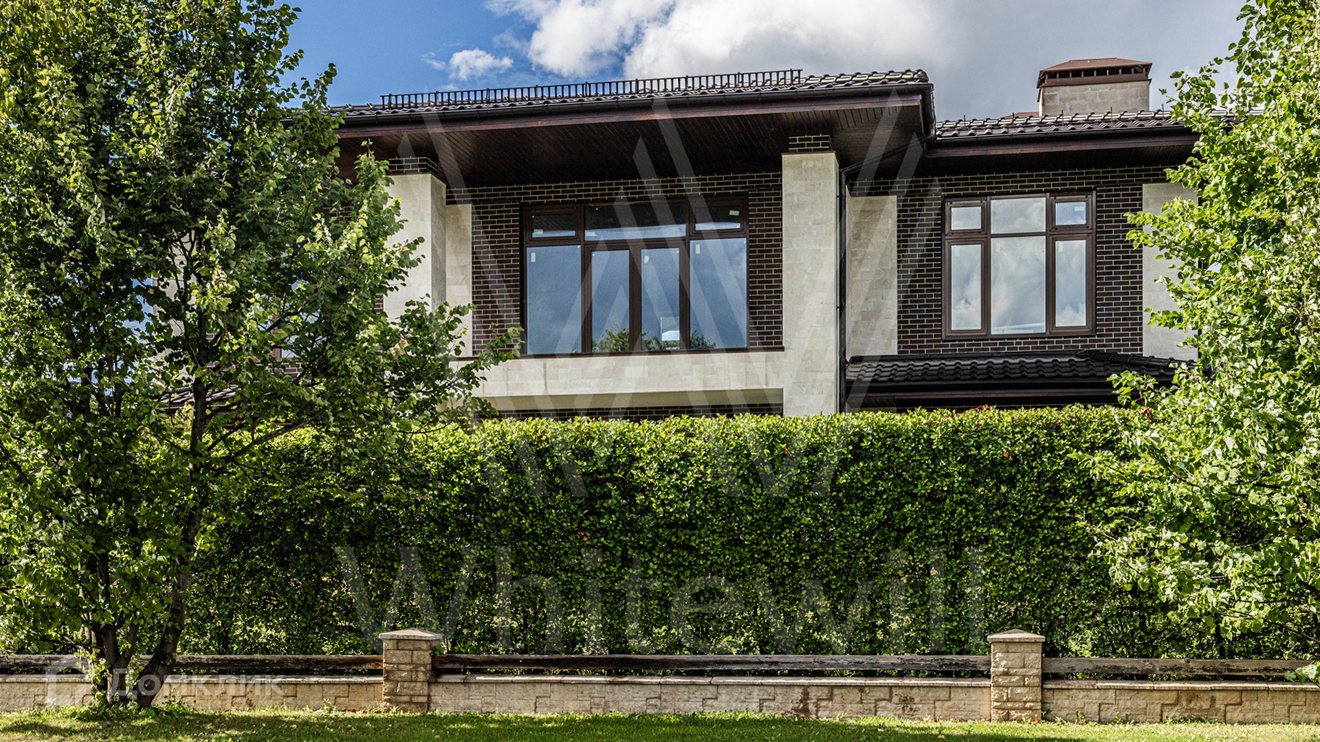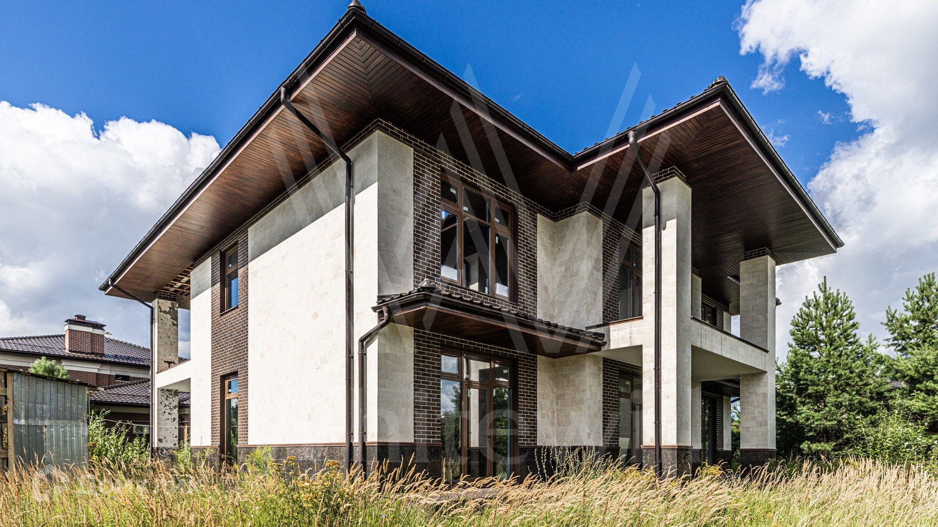 ID 12 094. Ренессанс Парк. Загородный дом площадью 420 м² расположен на просторном полевом участке 17,6 сотки. Фасад здания выдержан в современном стиле и отделан под натуральный камень. Резиденция без отделки подходит для реализации дизайн-проекта, учитывающего каждую индивидуальную потребность. Внутри спланировали несколько спален, гостиную, кухню, столовую и зоны отдыха. В дом заведены все коммуникации. На участке можно выполнить ландшафтный дизайн, обустроить беседку с зоной барбекю и создать небольшой сад.