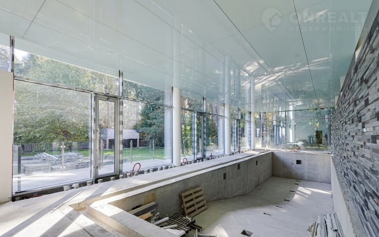1 эт.: холл, гардеробная, кухня с выходом на террасу, столовая, каминный зал с выходом на участок, кабинет, с/у, библиотека, гостевая спальня с с/у, игровая, 2 спальни с с/у и гардеробными; Зона бассейна: комната отдыха, сауна, душевая, с/у, бассейн (5х16м);