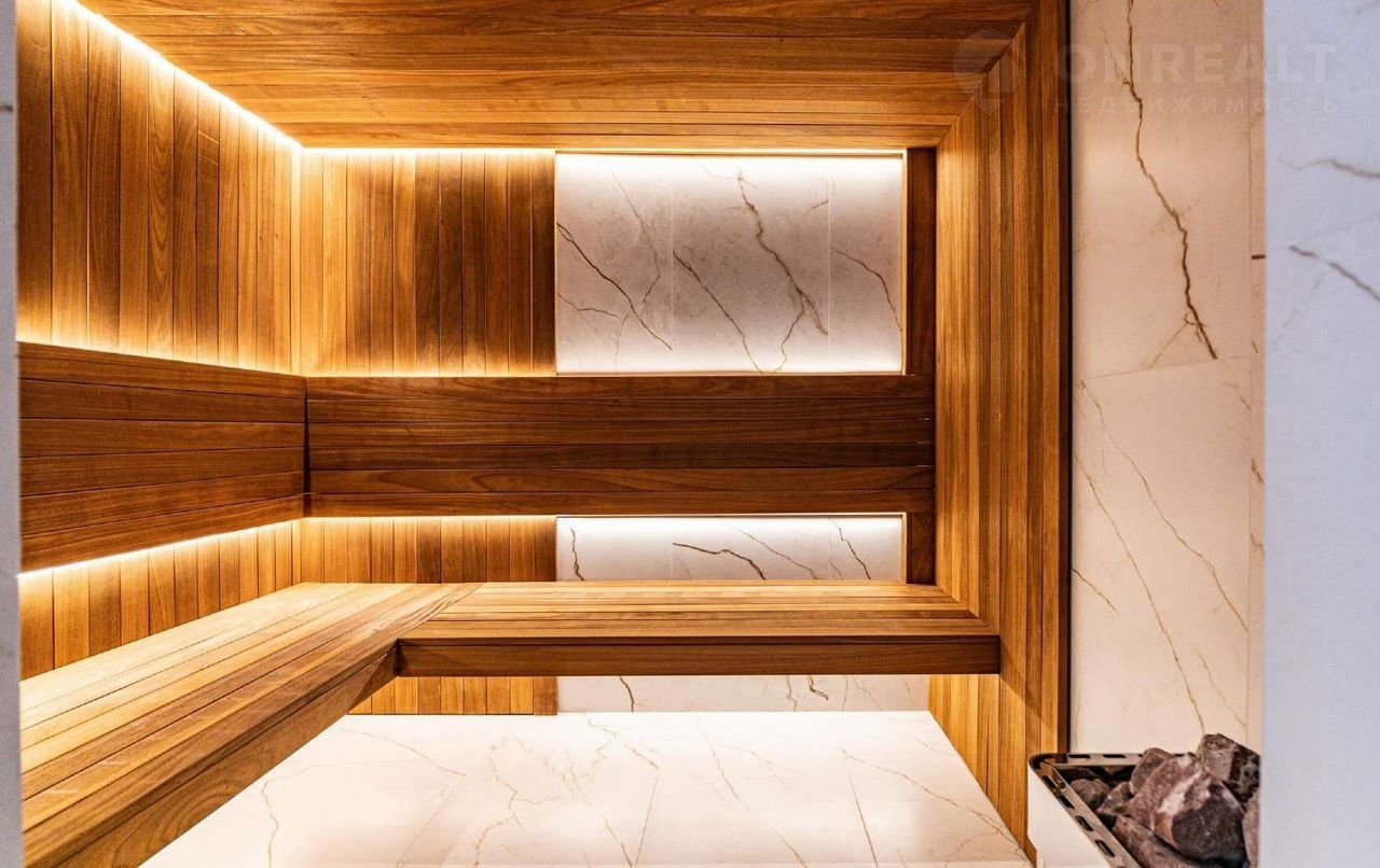 1-ый уровень: Холл, Гардеробная верхней одежды, Гостевая гардеробная, Два кабинета (с возможностью обустройства спальни или гардеробной), Гостевой су с душевой кабиной, Рабочая кухня и техническое помещение с отдельным входом, гостиная-столовая-кухня - единое пространство со вторым светом  Окна ориентированы сразу на 3 стороны – юго-восток юго-запад и северо-запад.  Выделено 5 функциональных зон: (медиа зона с ТВ и дровяным камином/ лаунж зона с возможностью размещения двух больших диванов/ столовая, с возможностью размещения стола до 20 посадочных мест/ зона бара с двумя сервантами и местом под барную стойку/ парадная кухня с островом и с доступом в рабочую кухню), Блок свободного назначения с санузлом и сауной (может использоваться как игровая/ СПА/ спортзал/ кинотеатр/ бильярдная и т.д), Крытая терраса с доступом из кухни и столовой, Хозяйский санузел первого этажа оснащенный умывальником унитазом биде и писсуаром.