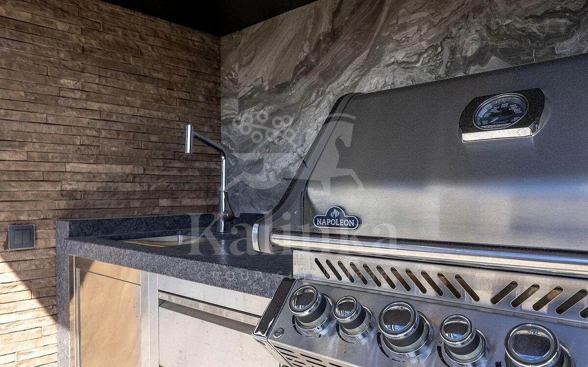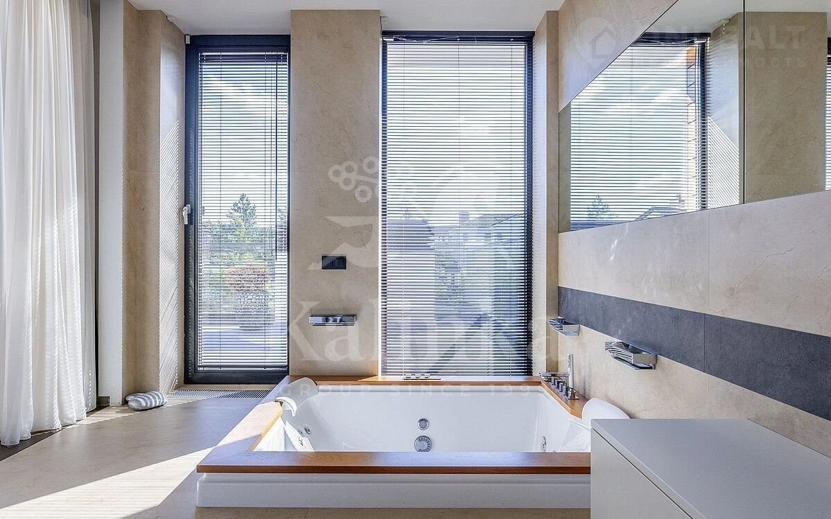 В доме установлено оборудование ведущих европейских брендов. Вся мягкая мебель, обеденный стол и стулья выполнены итальянским брендом Роlifоrm. На каждом этаже реализованы функциональные зоны с удобной логистикой. Общая жилая площадь дома - более 490 м², плюс около 97 м² террас и балконов.
