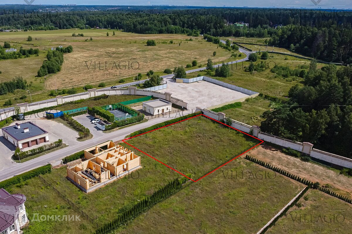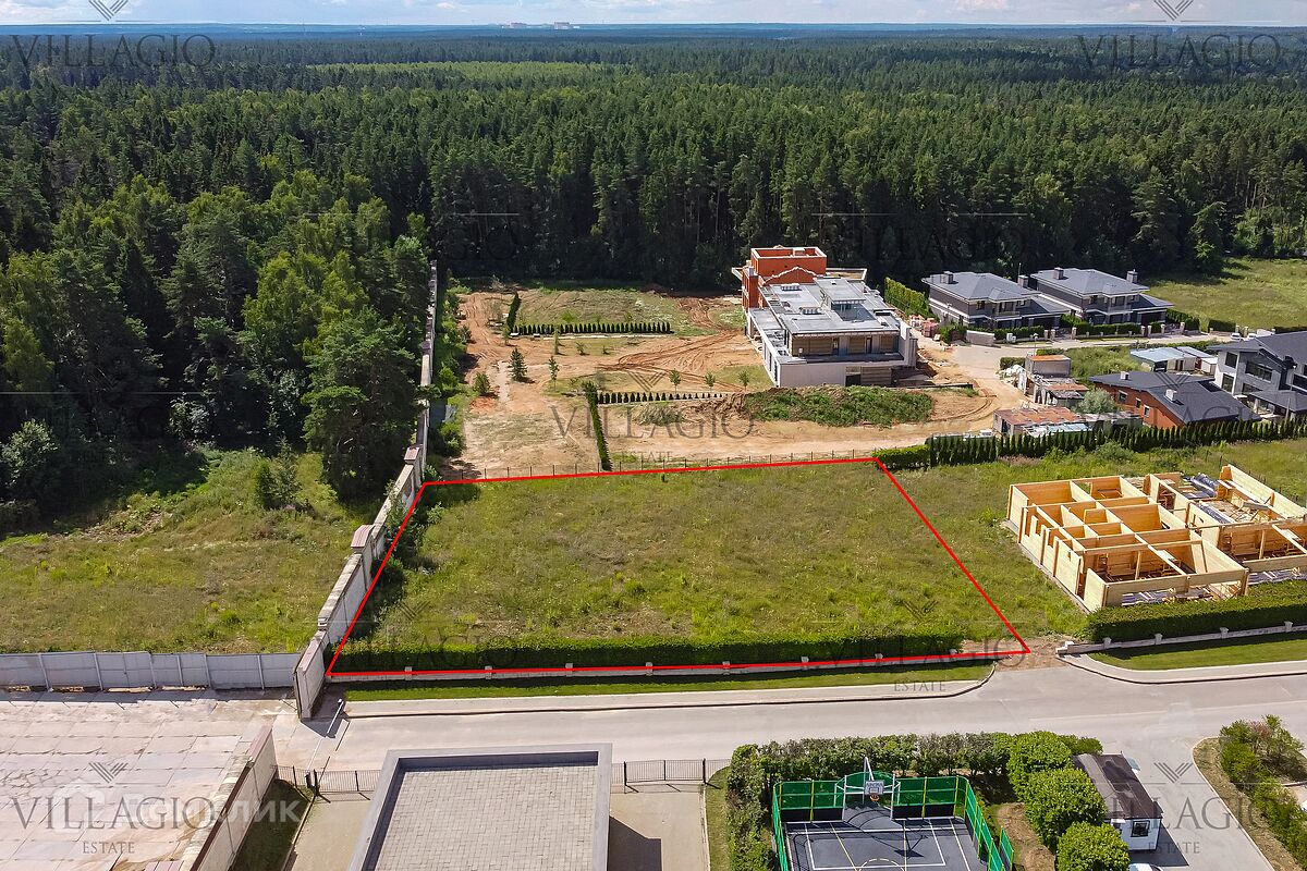 Участок размером 24 сотки располагается в коттеджном посёлке Ренессанс Парк в 19 км от МКАДа. Позади участка начинается густой лес, который дарит этой местности чистый воздух и живописные виды. Участок пустой — газон и деревья остаются на усмотрение хозяев. Соседские участки застроены. Через дорогу расположена футбольная площадка, окруженная густой изгородью. В пяти минутах ходьбы общественные пространства для прогулок и отдыха в посёлке.