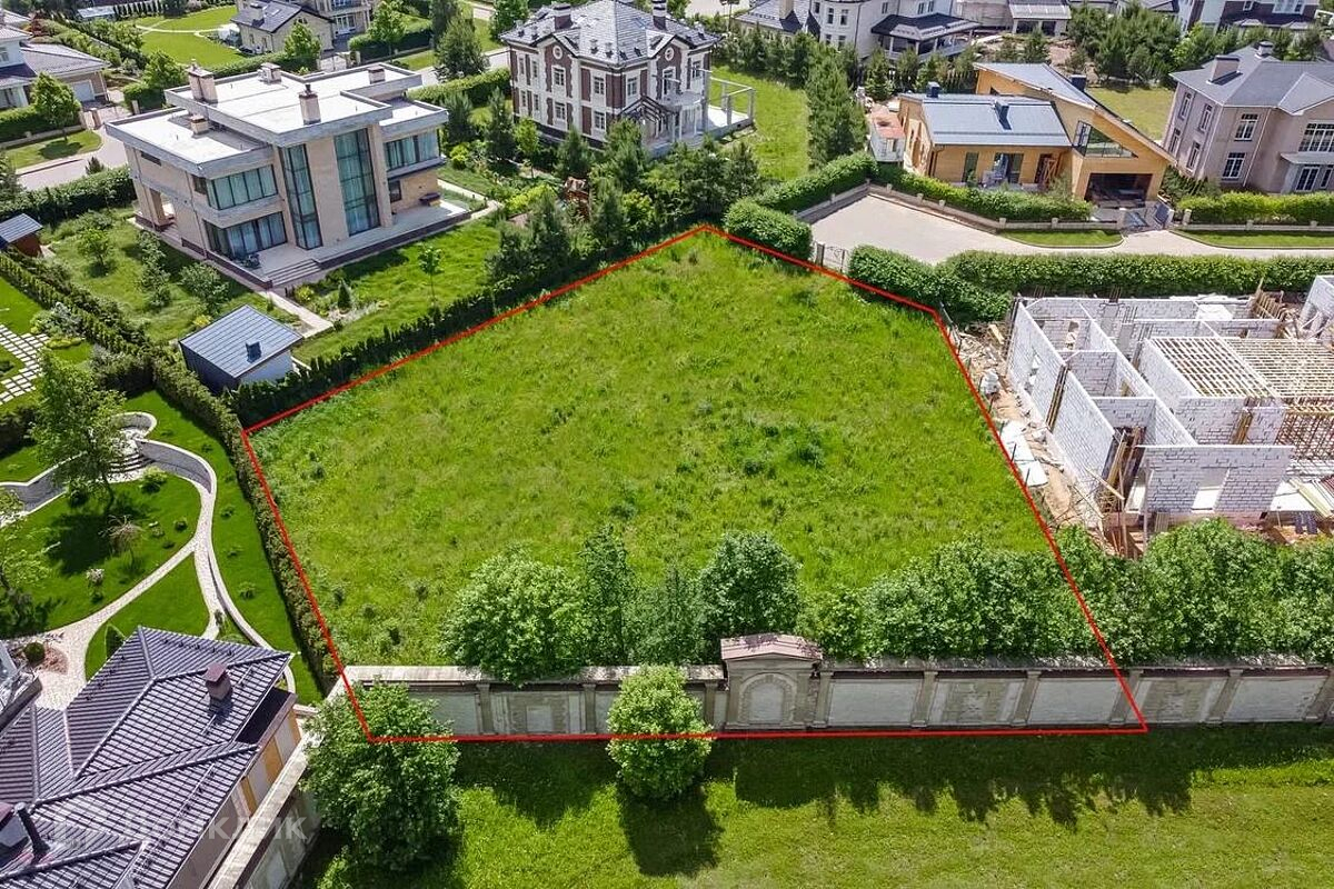 Большой загородный участок ID 6163 соседствует с домовладениями, на которых строительные работы либо уже завершены, либо приближаются к сдаче объекта в эксплуатацию. Конфигурация надела немного неожиданная для территорий, расположенных далеко от края посёлка: она представляет собой пятиугольник. Два угла у фигуры прямые, три – тупые. Общая площадь участка – 18 соток. Если условно разбить его на два простых геометрических элемента, получится почти правильный прямоугольник (на него приходится основная доля площади) и треугольник. Территория спланирована и полностью подготовлена под застройку. Вдоль одной из граней пятиугольника, лежащей напротив въезда, растут взрослые деревья: они играют роль шумозащитного экрана со стороны проезжей части параллельной улицы. У владельца этого участка есть уникальная возможность: обыграть оригинальные очертания дома; разбить территорию на нестандартные функциональные зоны – например, ортогональные, треугольные и радиусные. Подобные участки застраиваются по индивидуальному проекту. Его разработку по заказу владельца могут выполнить архитекторы девелопера. Поселившись в элитном посёлке «Ренессанс Парк», вы сможете наслаждаться живописным ландшафтным дизайном, любоваться красотой огромного фонтана, отдыхать в парке на берегу озера, наблюдая, как неутомимая детвора осваивает лестницы и горки детской площадки. Если вы любите спорт, в вашем распоряжении спортивная площадка, теннисные корты и велодорожки.