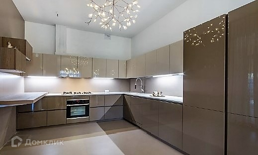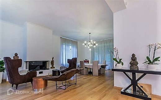 Внутреннее пространство обустроено с использованием высококачественной мебели и бытовой техники: кухонный гарнитур класса люкс итальянской марки Pedini, столовая зона Baxter, дизайнерская мягкая мебель.