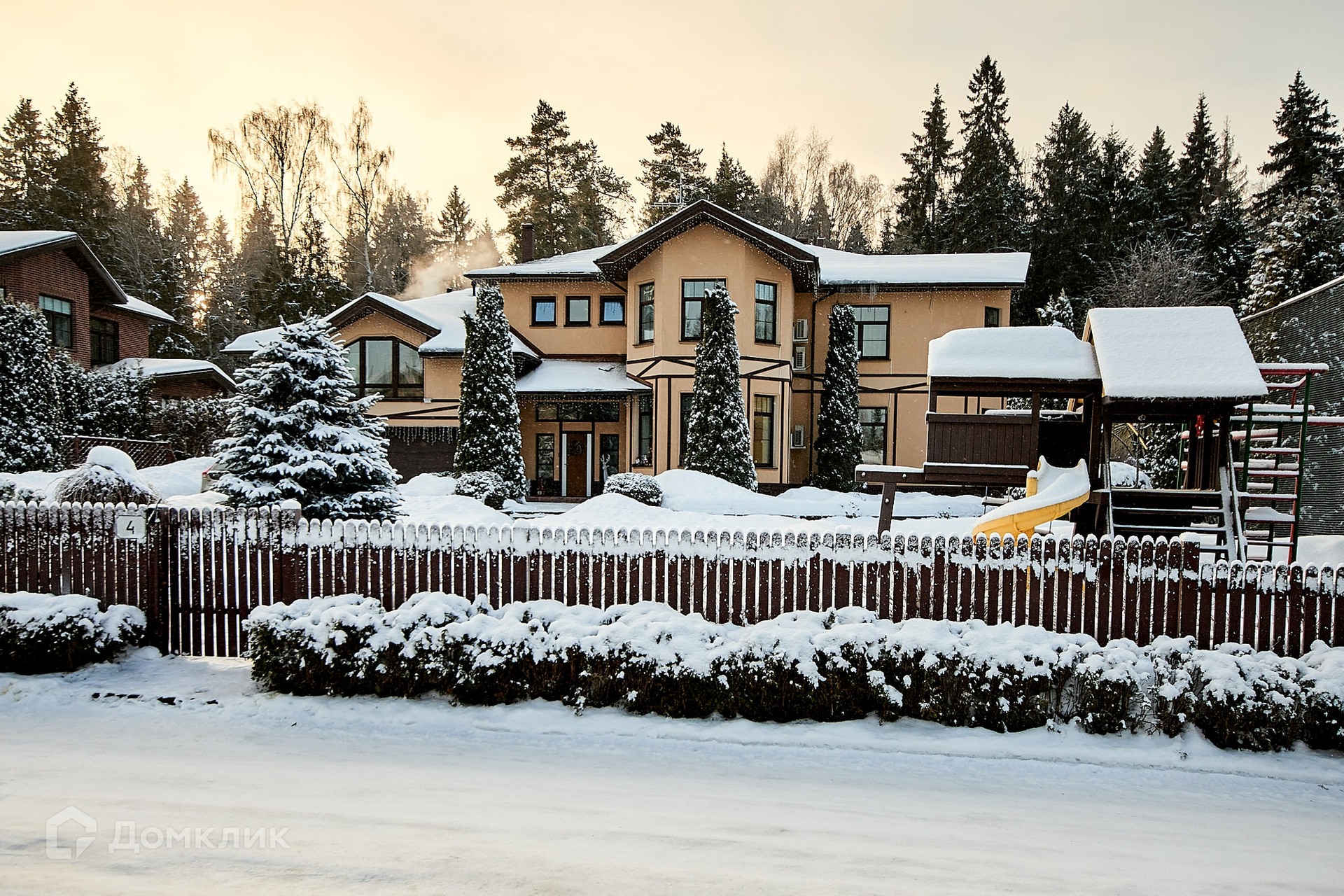 Перед домом ухоженная лужайка и спортивная площадка, в глубине бассейн, огород, гостевой дом и вековой лес 1 категории.