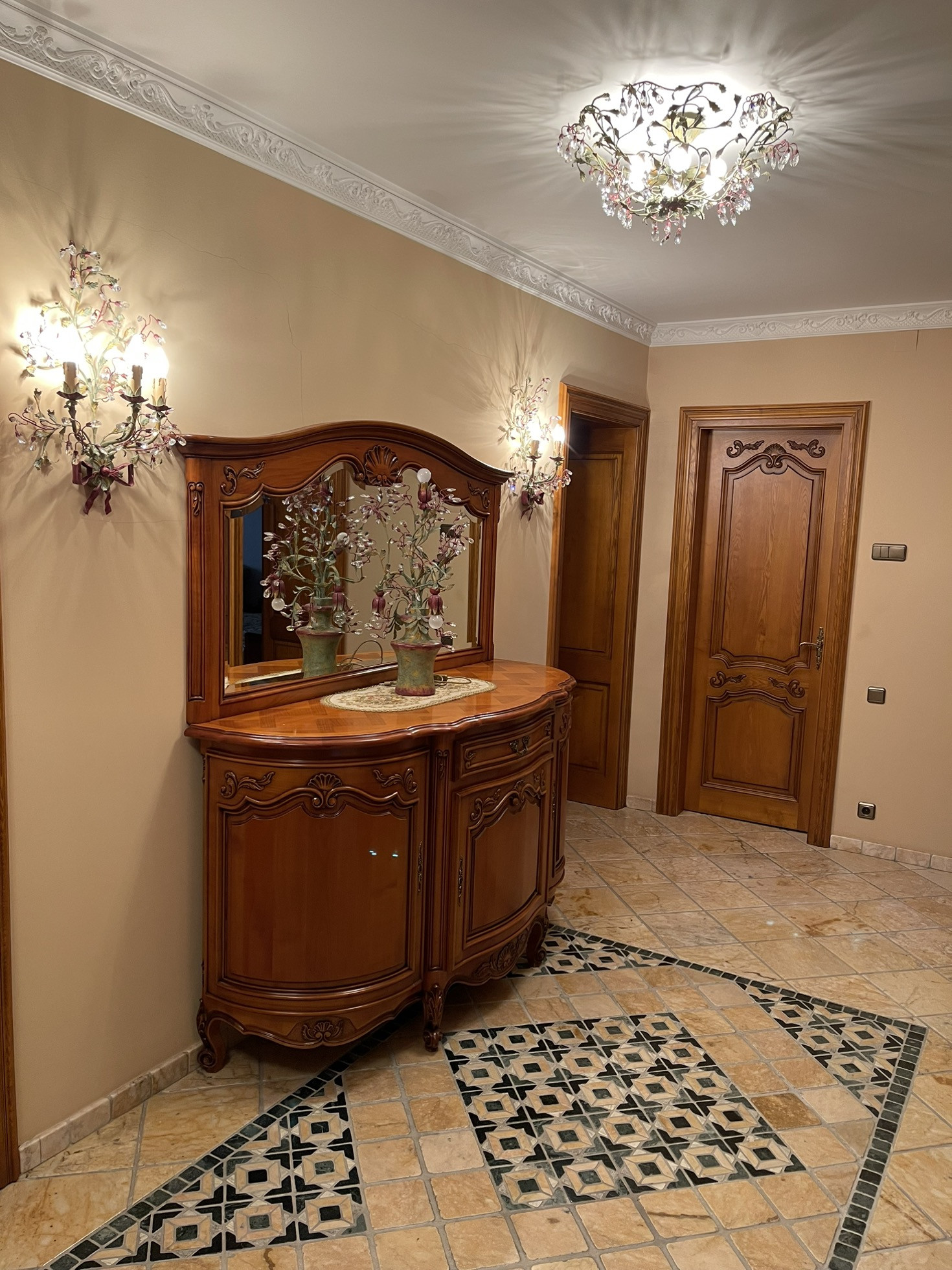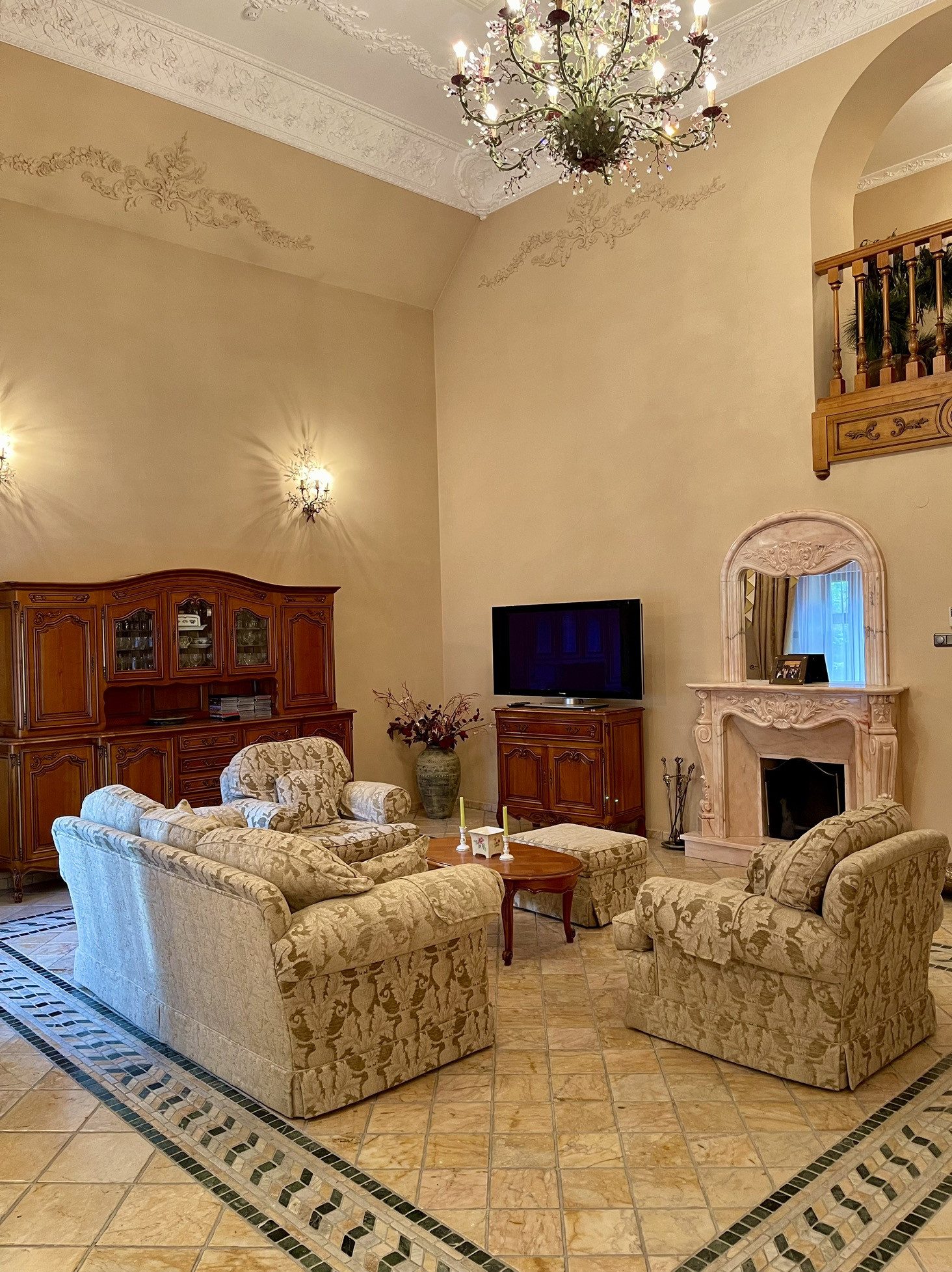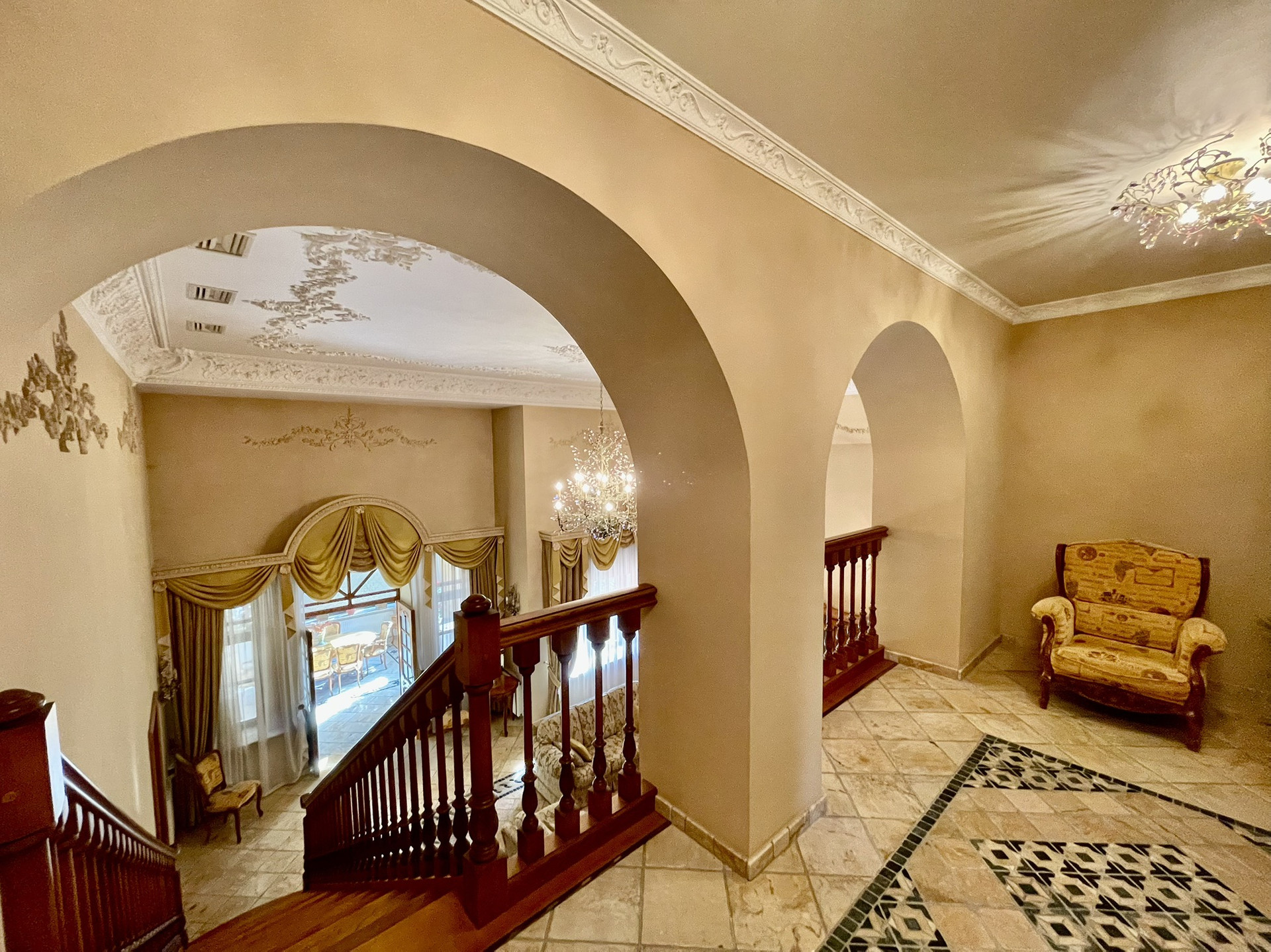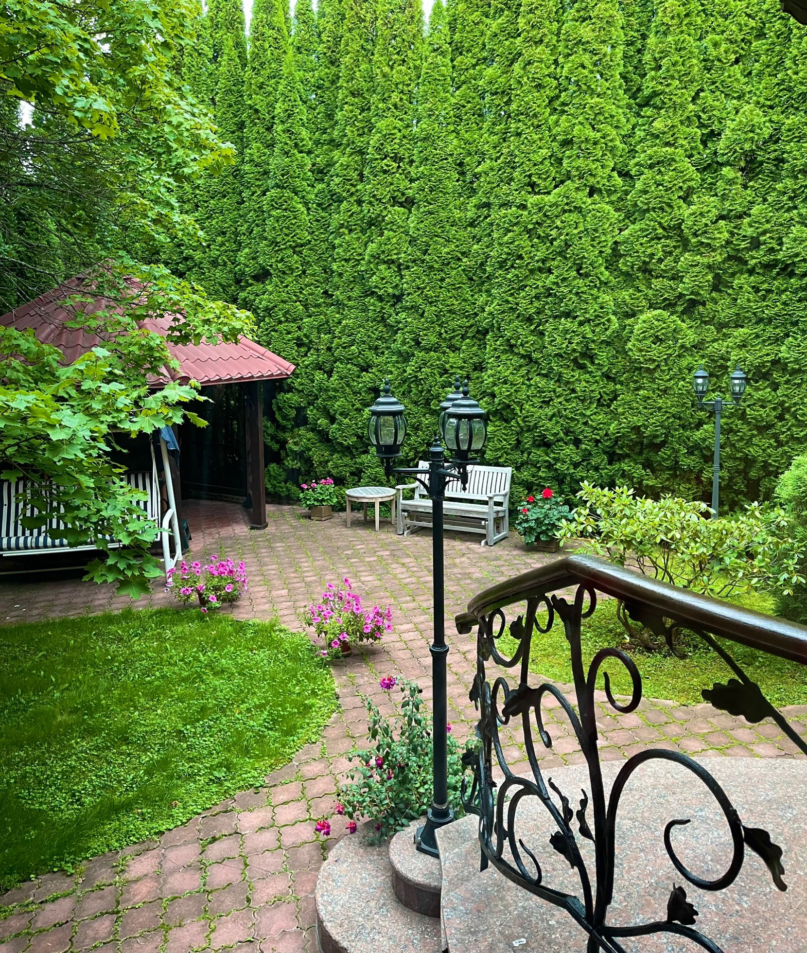 Трехэтажный кирпичный коттедж площадью 426 кв.м. (плюс 200 кв.м. мансарда) на участке 13,4 сотки, к нему примыкает участок 45 соток, который можно купить дополнительно. В доме 4 спальни и 5 санузлов. Дизайнерский проект, уникальные отделка и мебель.