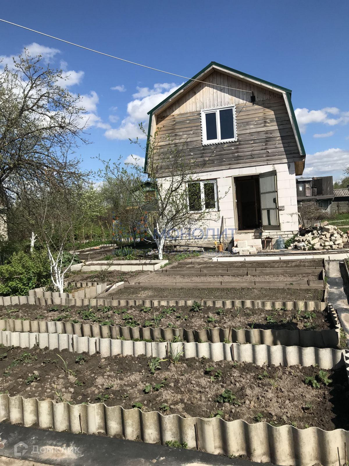 Продам дачу в г. БОР, 3.27 соток земли, хороший домик (фундамент лента, первый этаж газосиликат, второй дерево, перекрытие деревянные), кухня и комната жилые, второй этаж нужно облагородить. Электричество, возможность подвода центрального водопровода. На участке уже есть плодовые деревья и кустарники. д. Чистяки, СНТ Радуга уч. 24. Охраняемый СНТ, рядом остановка.Номер объекта: #150/1437463/11523