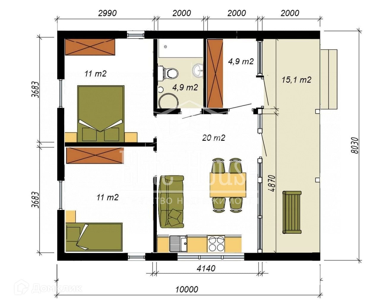 * Общая площадь: 70кв.м