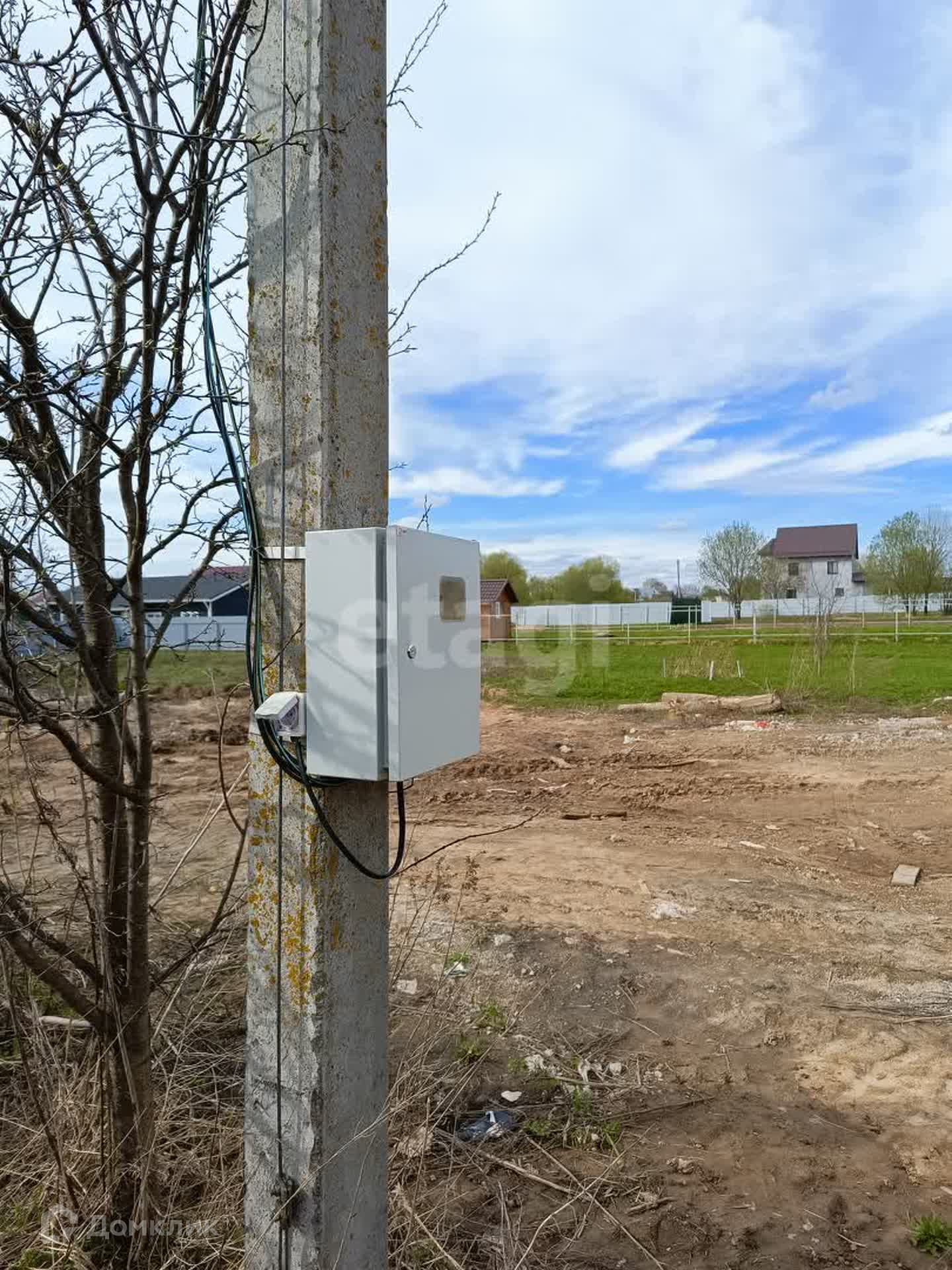 На участок заведено электричество, оформлен лицевой счет, примерно в 25 метрах проходит газ и центральный водопровод. Сзади участка можно организовать канализацию..