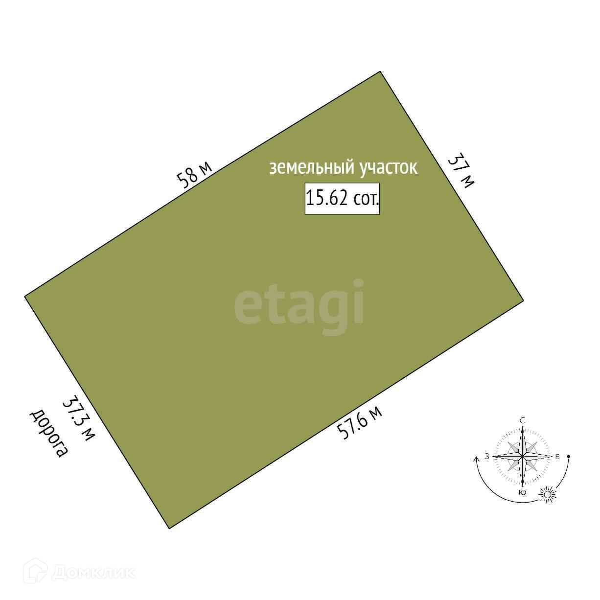 Площадь участка 15.62 сот.