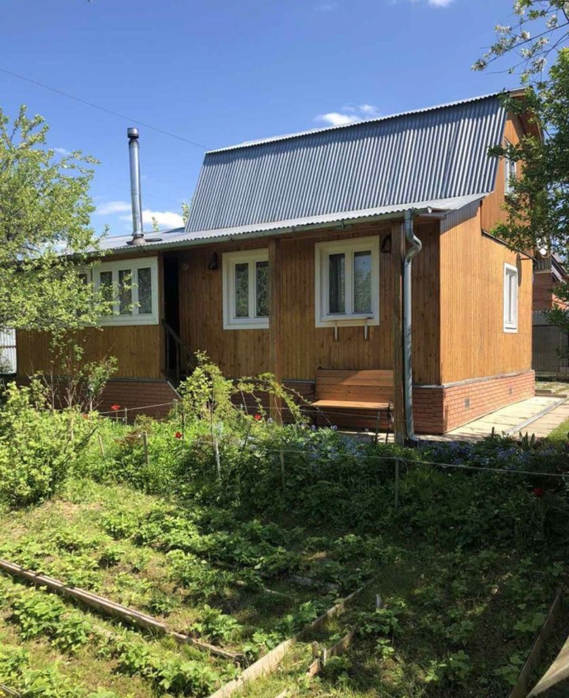 Продаётся светлый, уютный, хороший 2-х этажный дом в СНТ "Дружба - 2", д.81, рядом с д. Чудиново Чеховского района. Дом пригоден для круглогодичного проживания, находится в живописном красивом месте, рядом лес, пруд. Дом брус-бревно, утеплен и обшит вагонкой. Размер дома 6 х 10 метров. Второй этаж летний – не утеплен. В доме есть чугунная печь-камин. Хороший ленточный фундамент. Под домом большой подпол 6х10м. Земельный участок 6 соток, огорожен с четырех сторон оцинкованным железом. Калитка и 2-ое въездных ворот. На участке яблони, смородина, вишня. Много цветов - розы, пионы, тюльпаны. На участке есть летний туалет, душевая, хоз. блок, 2- теплицы, дровница, бочка на 3 тонны для полива. Коммуникации: электричество 12.5квт, своя скважина 25 метров с кессоном и всем оборудованием, 2 колодца под слив из дома. Подъезд чиститься зимой. В доме есть все для проживания - вода, 2 водонагревателя накопительные для воды, туалет, душевая, мебель, электроприборы. Есть бензопила, бензогенератор, мотоблок с пройденным ТО. В пешей доступности магазин, пруд для купания. Въезд на территорию через автоматические ворота, есть охрана. Дом подходит под ипотеку. Один взрослый собственник, вся сумма в ДКП. Дом без долгов и обременений, документы полностью готовы к сделке. Оперативный показ. КН земельного участка 50:31:0060115:81.