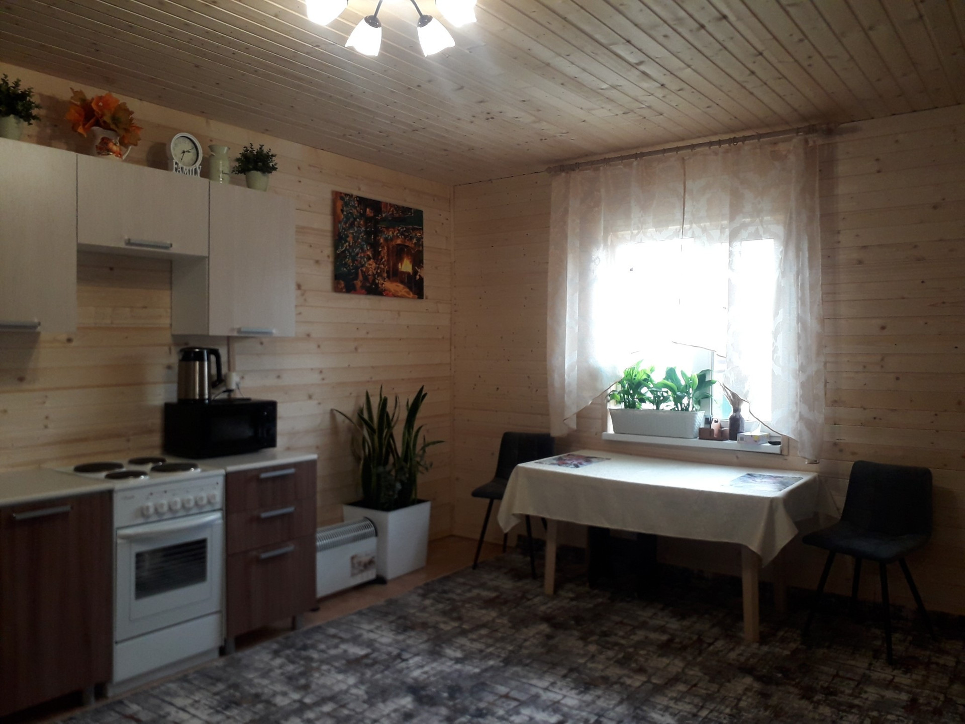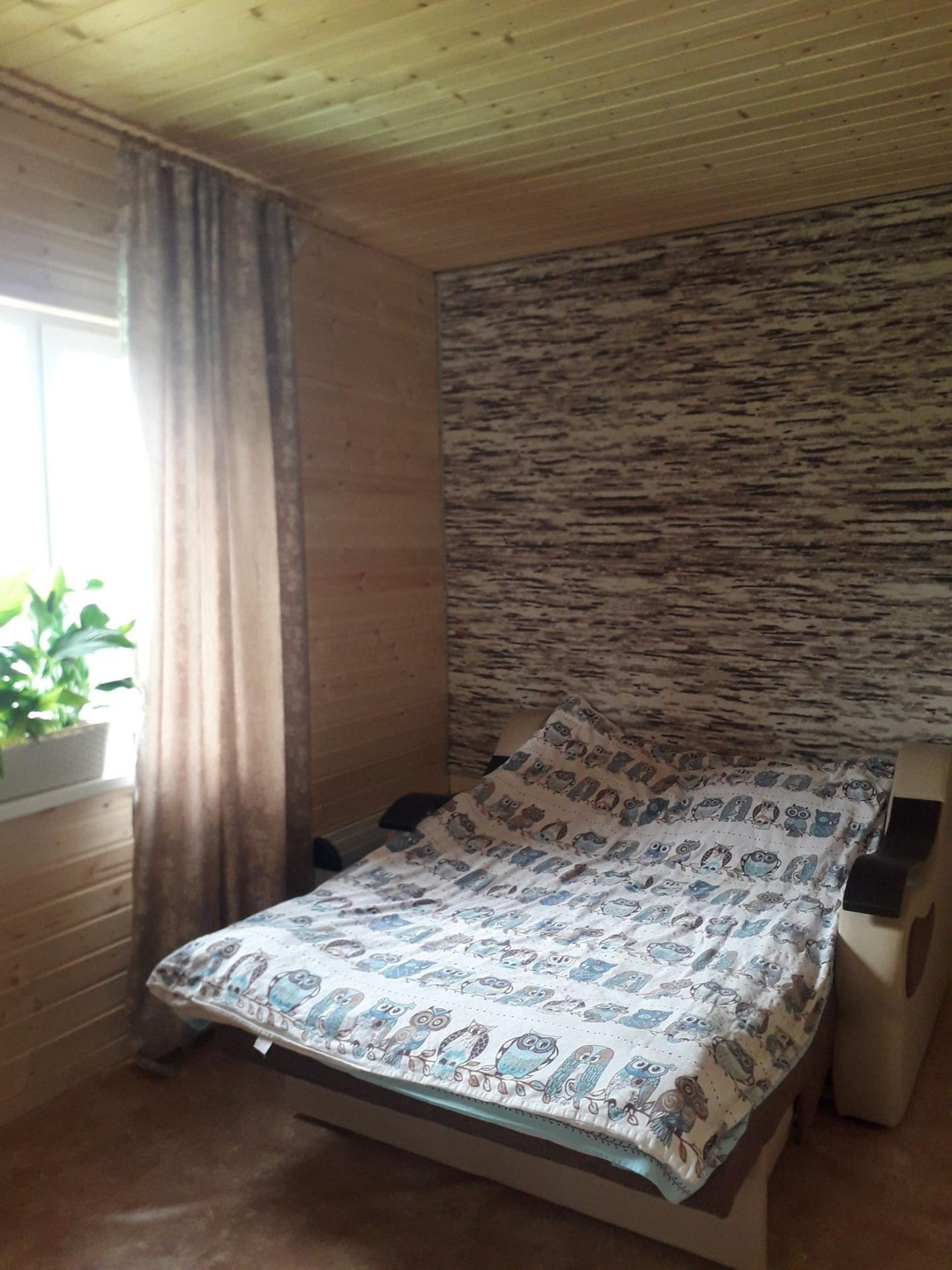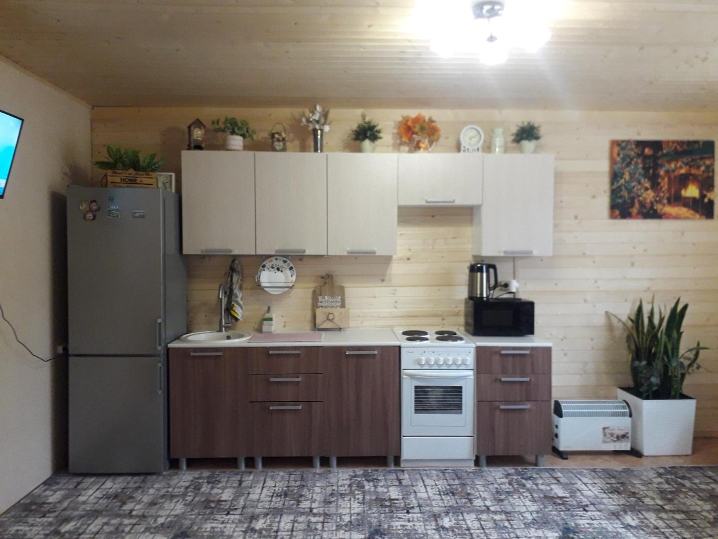 В доме прихожая, просторная гостиная,совмещенная с кухней,2 спальни и санузел.