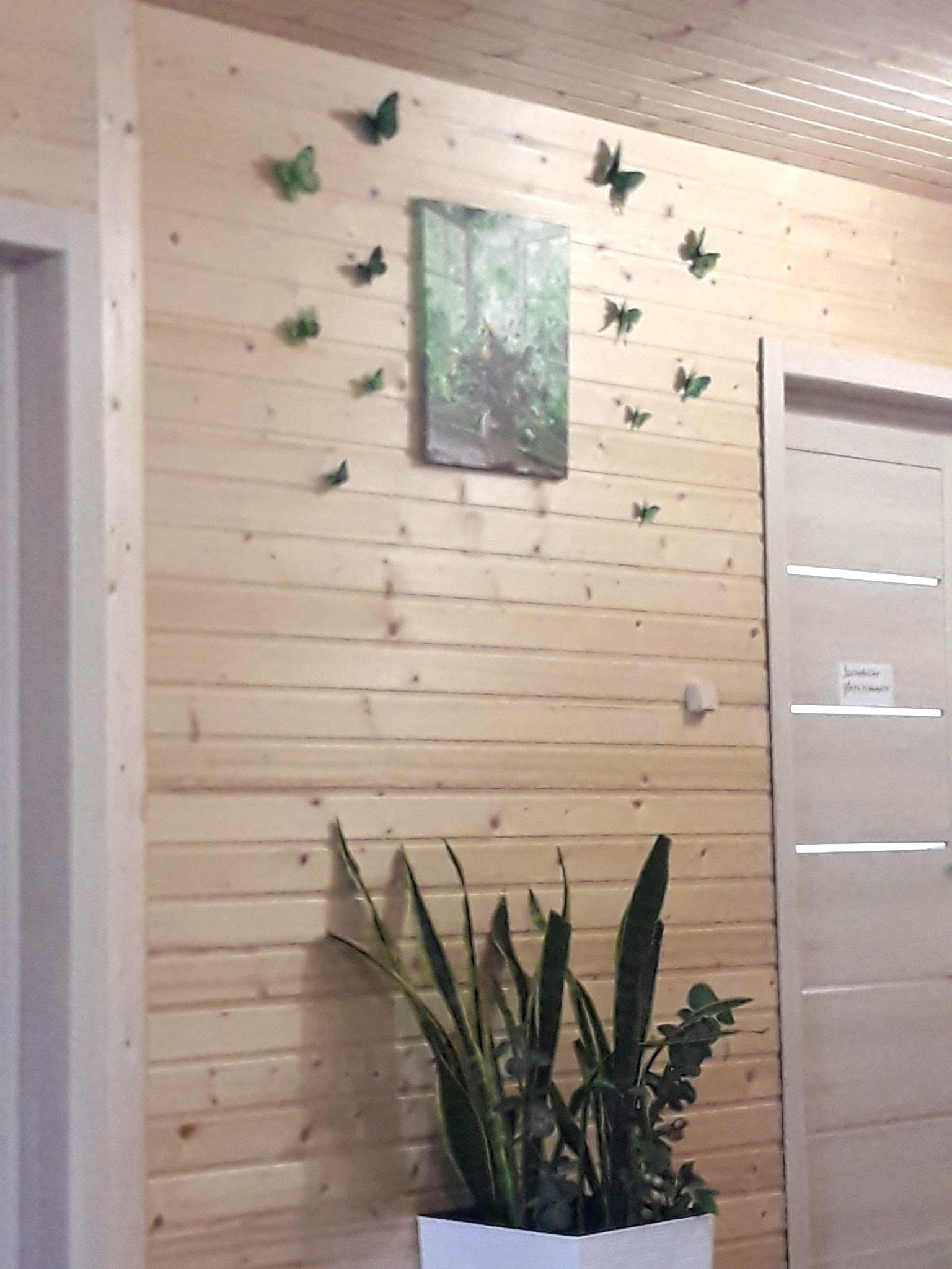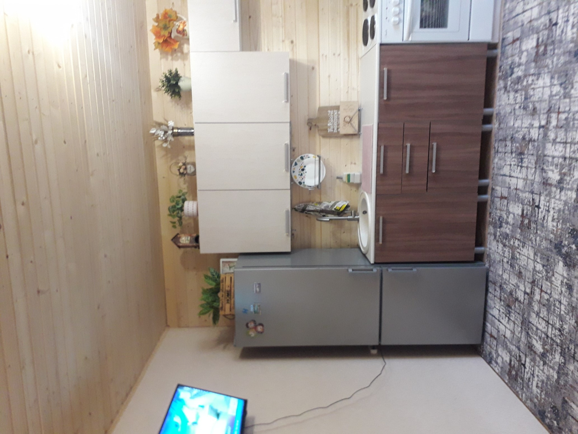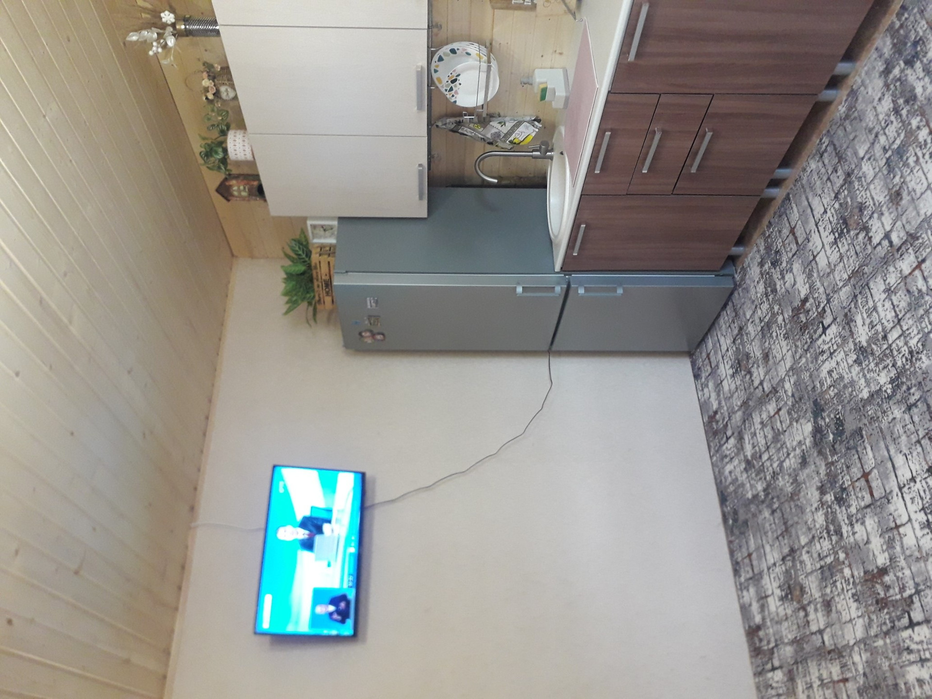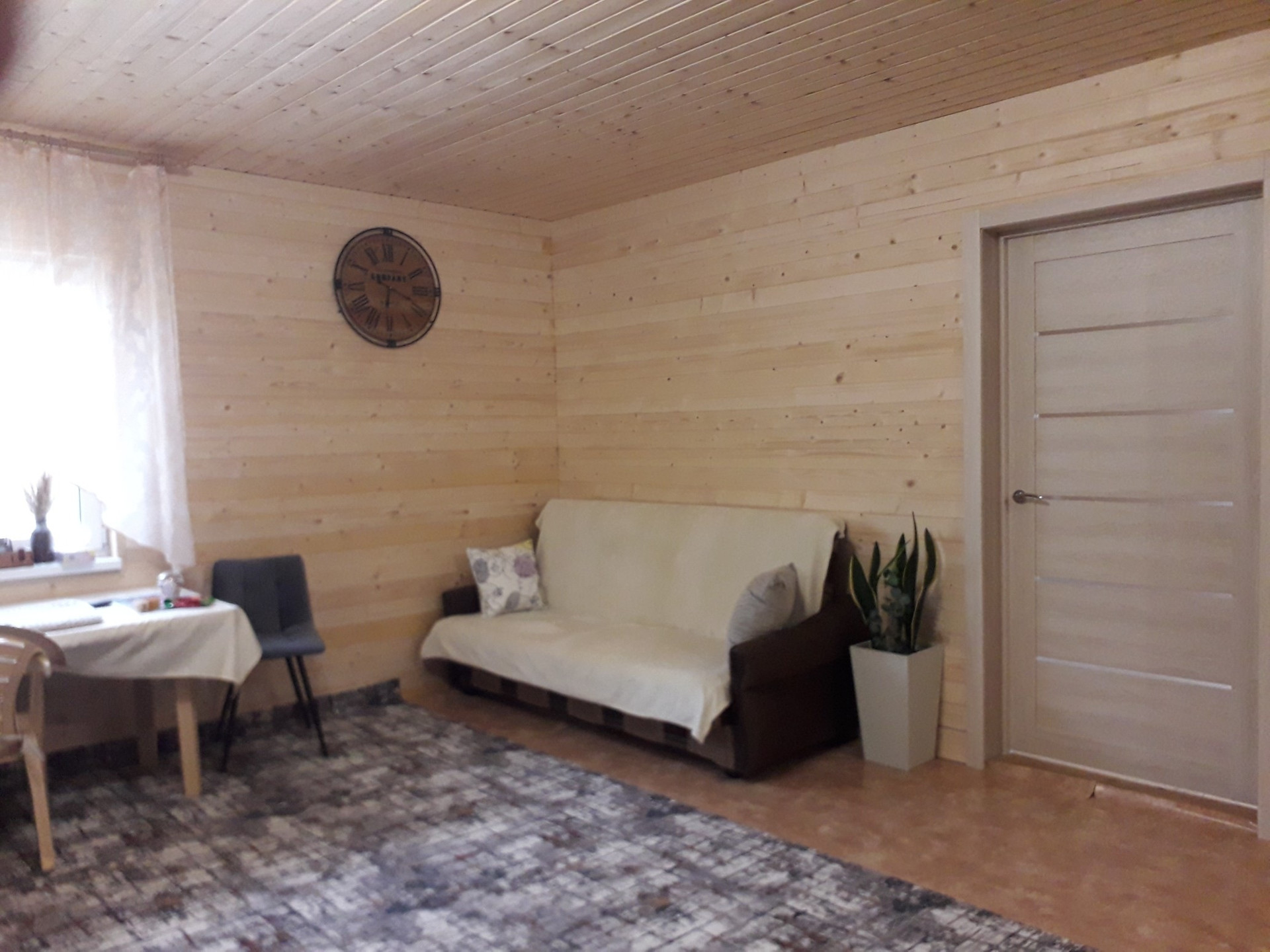 В доме прихожая, просторная гостиная,совмещенная с кухней,2 спальни и санузел.