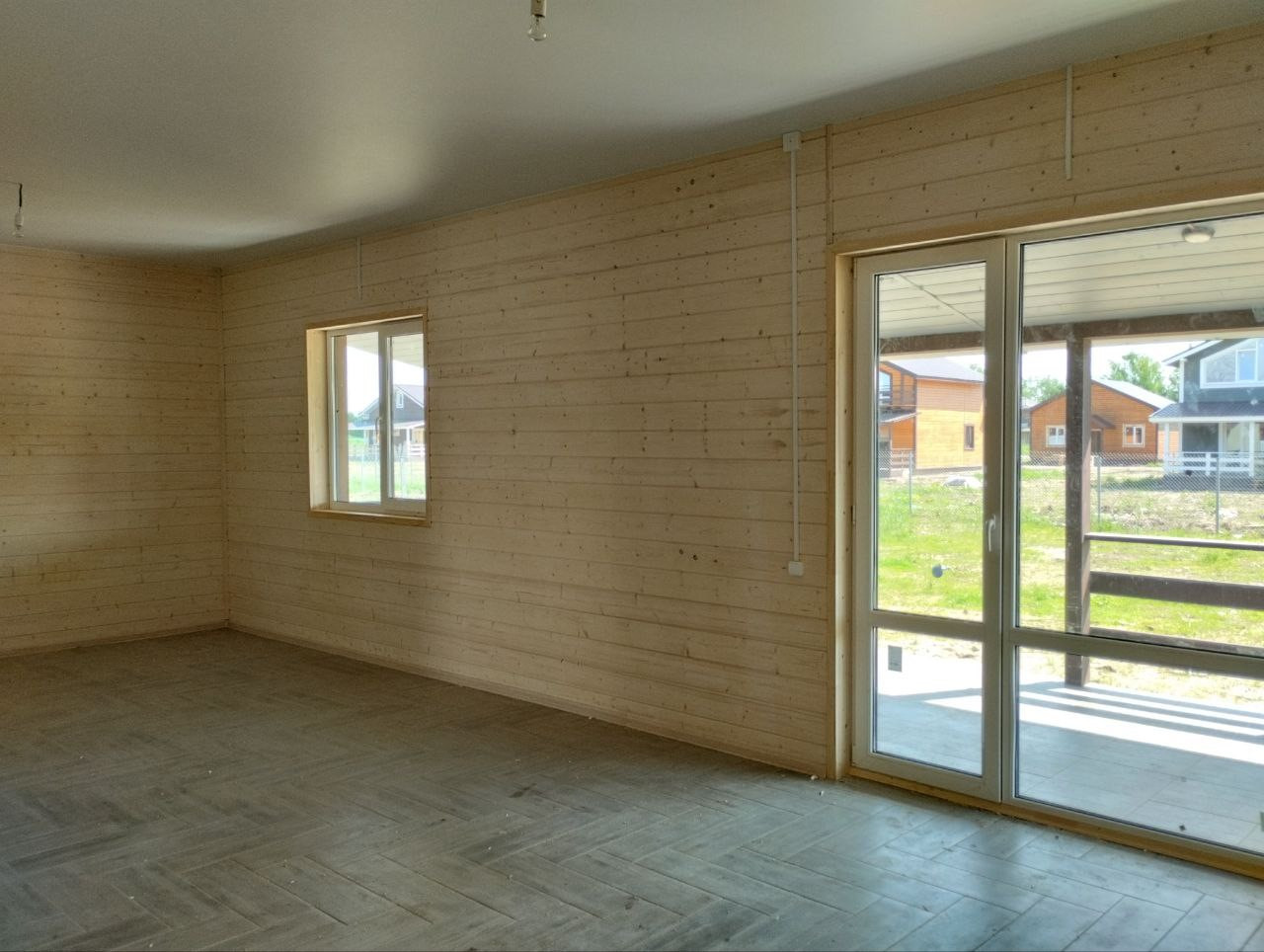 — Смонтированы натяжные потолки на первом этаже;
