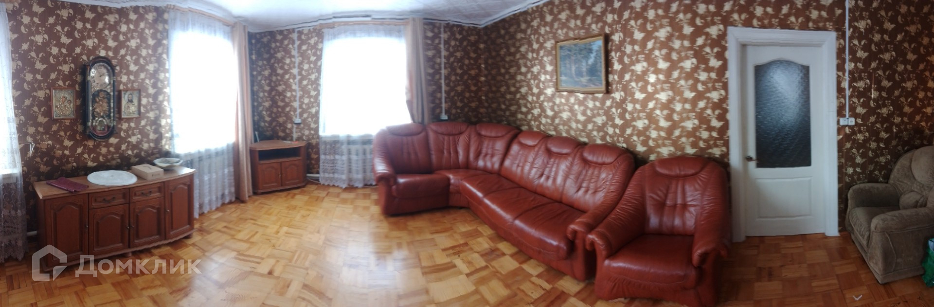 В доме пластиковые окна, на полу – паркет.