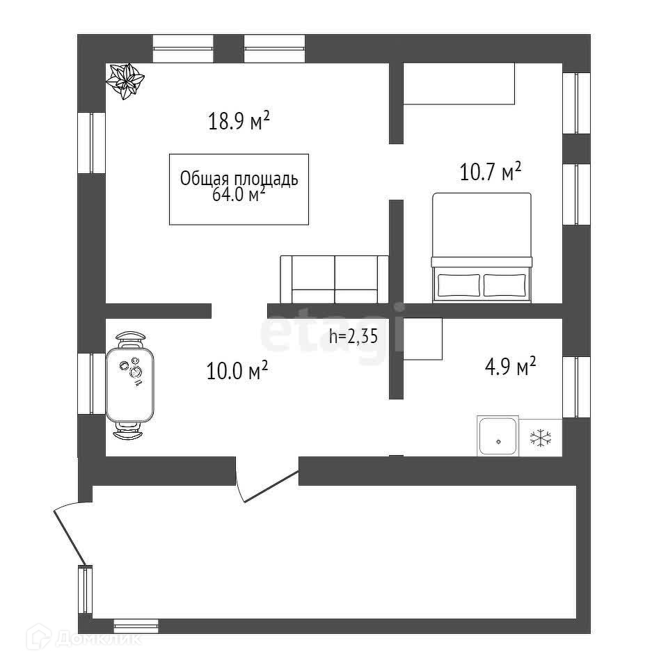 Общая площадь 64 м2