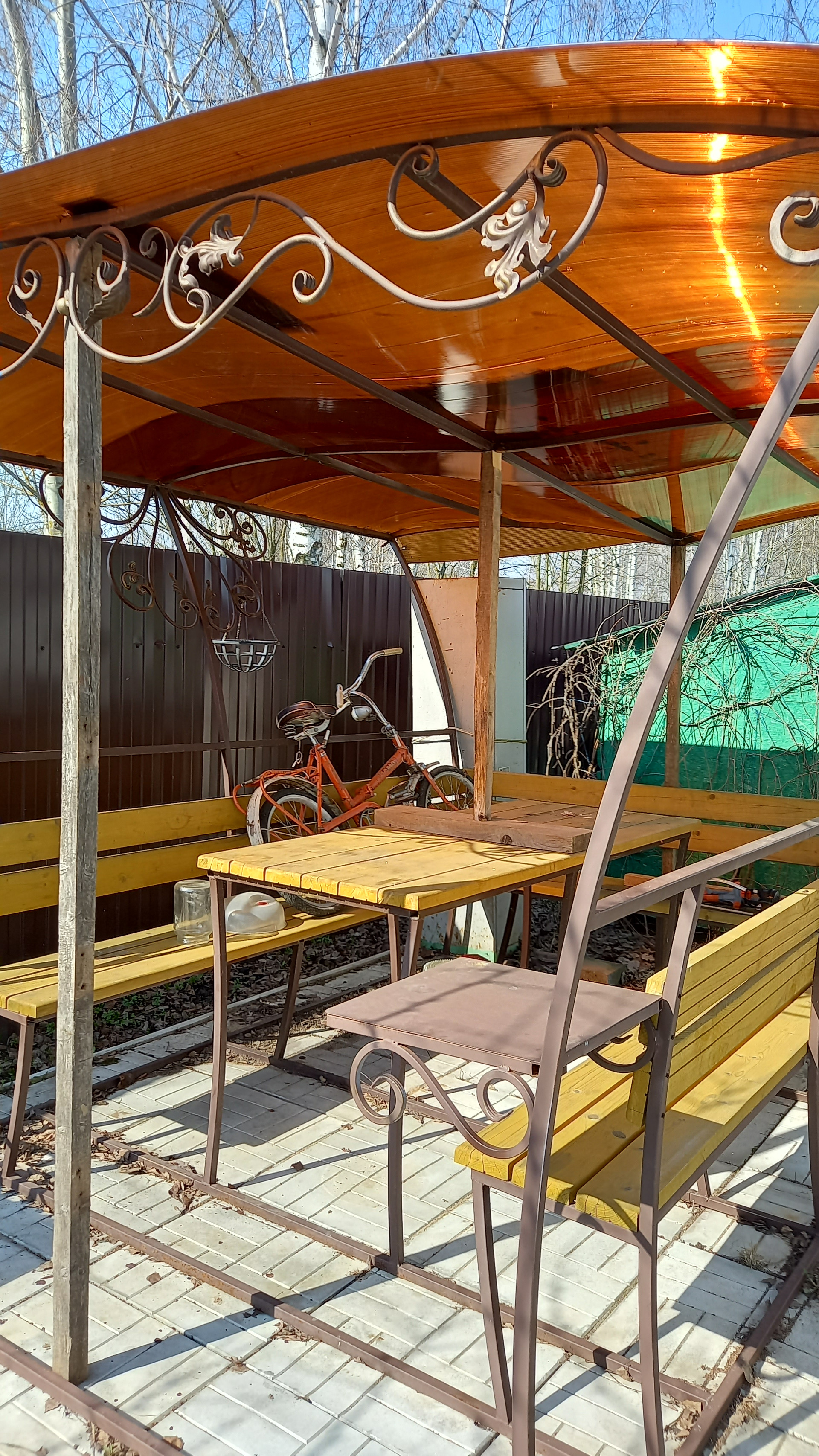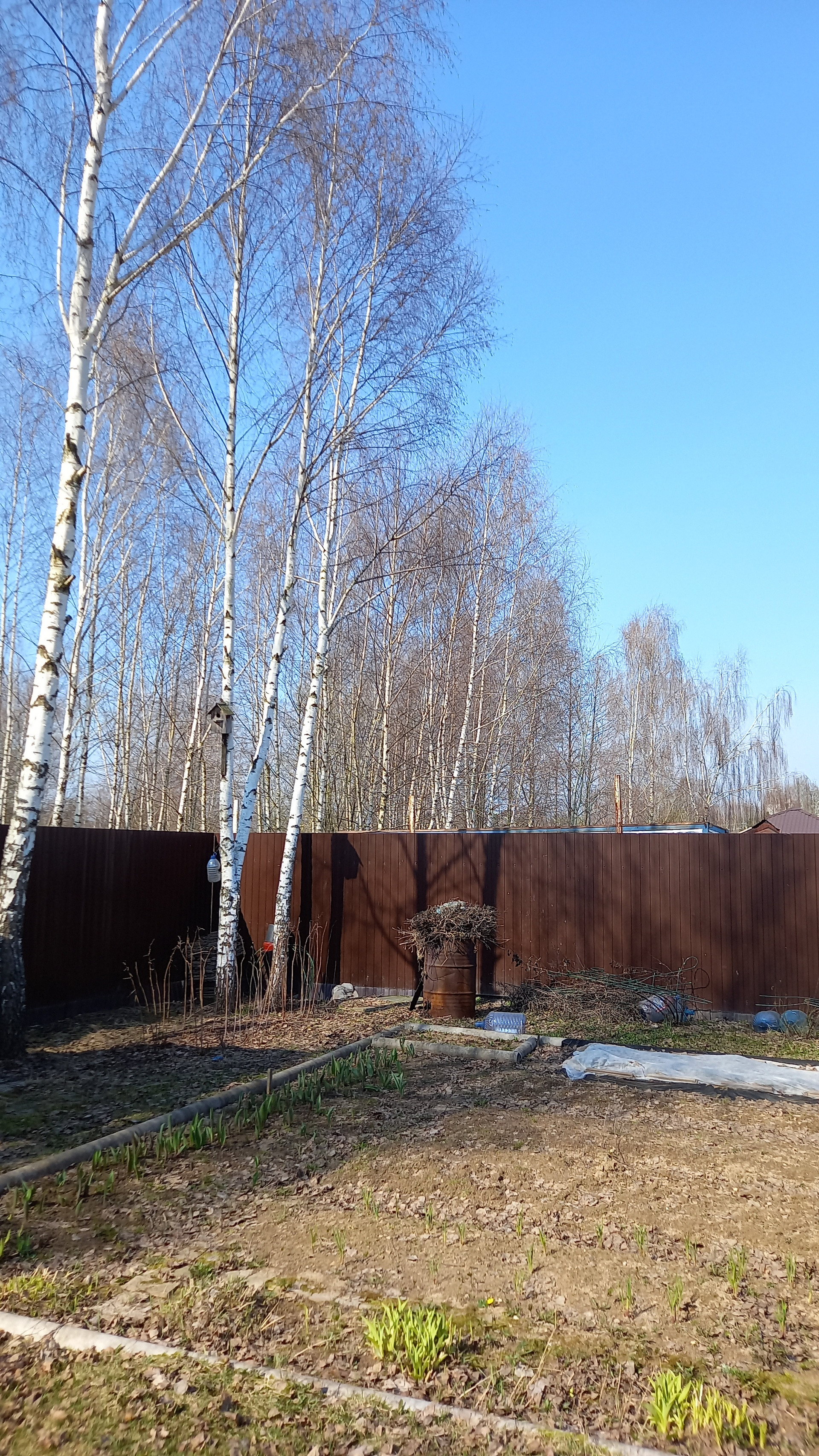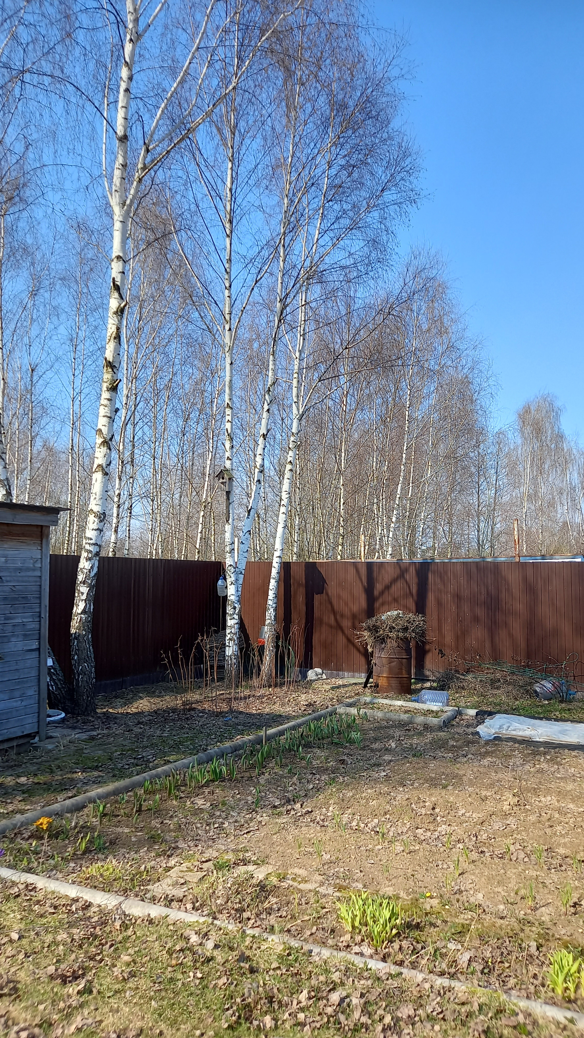 Участок ухоженный - правильной формы. Огорожен со всех сторон забором из профнастила. Перед домом газон, уголок из хвойников, вдоль забора с двух сторон плодоносящие слива, черешня, яблони, груша и другие кустарники. Перед входом в дом розарий. Также имеется зона отдыха - стол, скамейки под навесом, качели. За домом огород и вдоль забора большие березы. Сарай, дровница. Водоснабжение - колодец на 9 колец плюс насосы. Газ проведены трубы вдоль забора. В этом году планируется подключение всей деревни к газоснабжению.