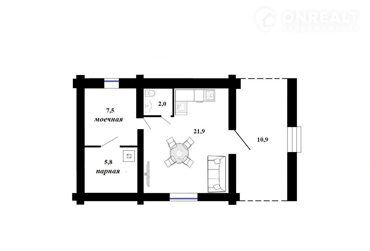 — гостевой дом-баня 2021 года постройки из оцилиндрованного бревна, общей площадью 48,2 кв.м. Фундамент — утеплённая плита. Отопление — тёплые полы, финская дровяная печь Каstоr для истинных ценителей и почитателей банных традиций. Дом полностью оснащён всей необходимой мебелью и бытовой техникой! Идеальный вариант для инвестиций с дальнейшей сдачей домика в посуточную аренду!
