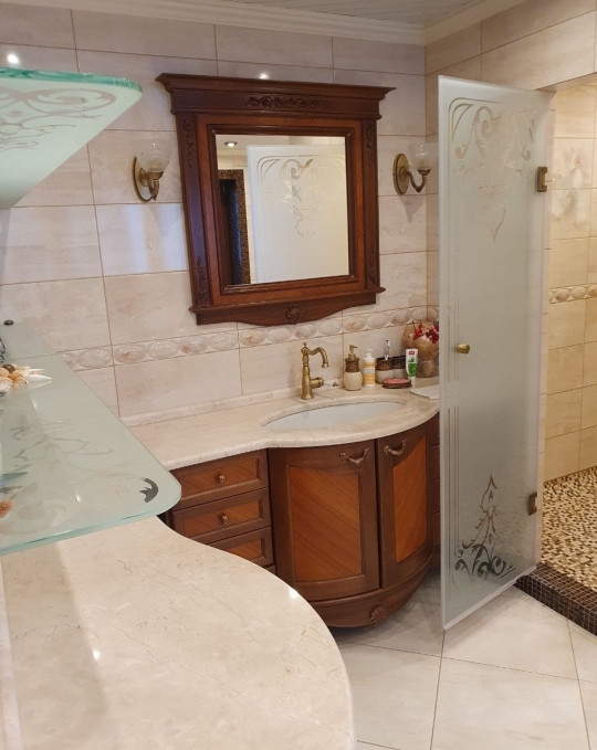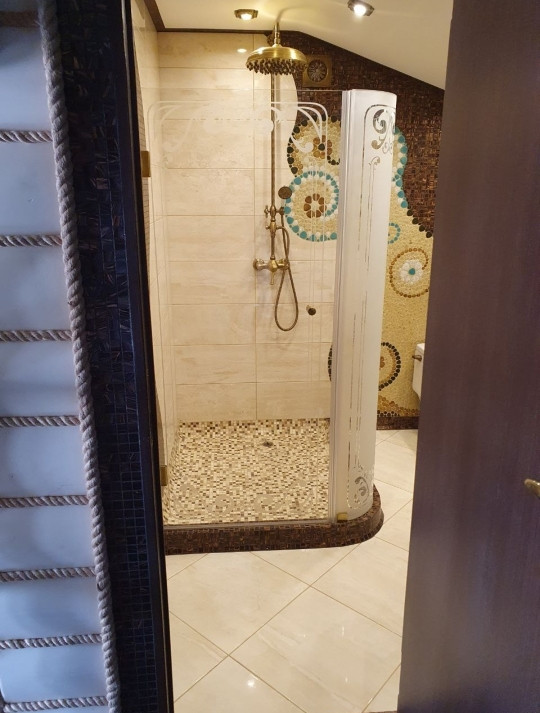 2 этаж - две спальни, зона отдыха, ванная, санузел. При отделке использовались дорогие качественные материалы.