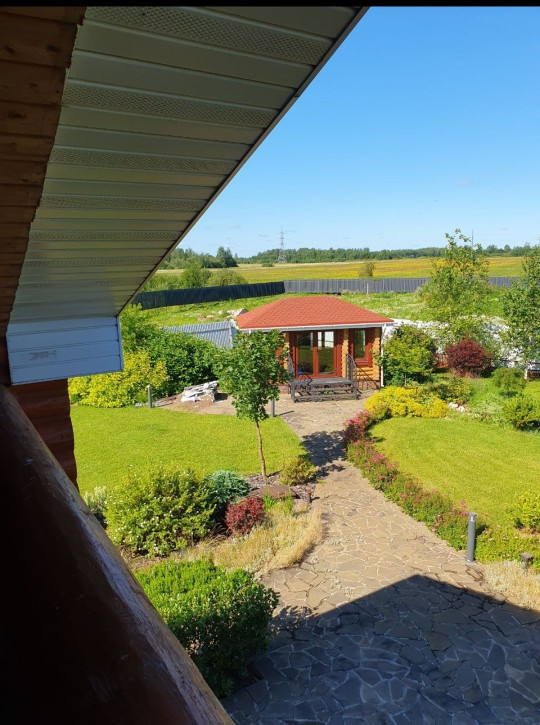 На территории дома расположены пруд, чайный домик, гостевой дом. Территория полностью благоустроена, выполнен ландшафтный дизайн: плитка, освещение, газон, плодово-ягодные, садовые насаждения. На участке установлено видеонаблюдение, в дом заведена сигнализация.
