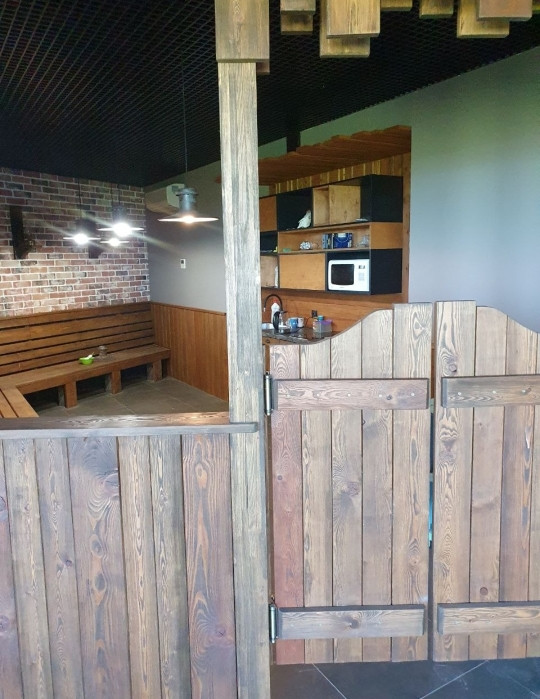 В здании выполнены ремонт и отделка всех помещений. На каждом этаже своя система приточно-вытяжной вентиляции, теплые полы, оборудованная обеденная зона, сауны. Для комфортного перехода в здании оборудован лифт.